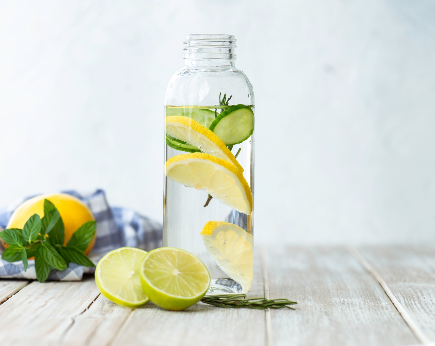 Wer es lieber säuerlich und herb mag, wird Gurkenwasser lieben! Du brauchst ein Viertel einer Bio-Gurke und einen Liter Wasser. Zunächst schneidest du die Gurke mitsamt der Schale entweder in dünne Scheiben oder kleine Würfel und fügst sie dem Wasser bei. Frischer Bio-Dill oder Bio-Minze passen als weitere Aromen wunderbar ins Gurkenwasser.