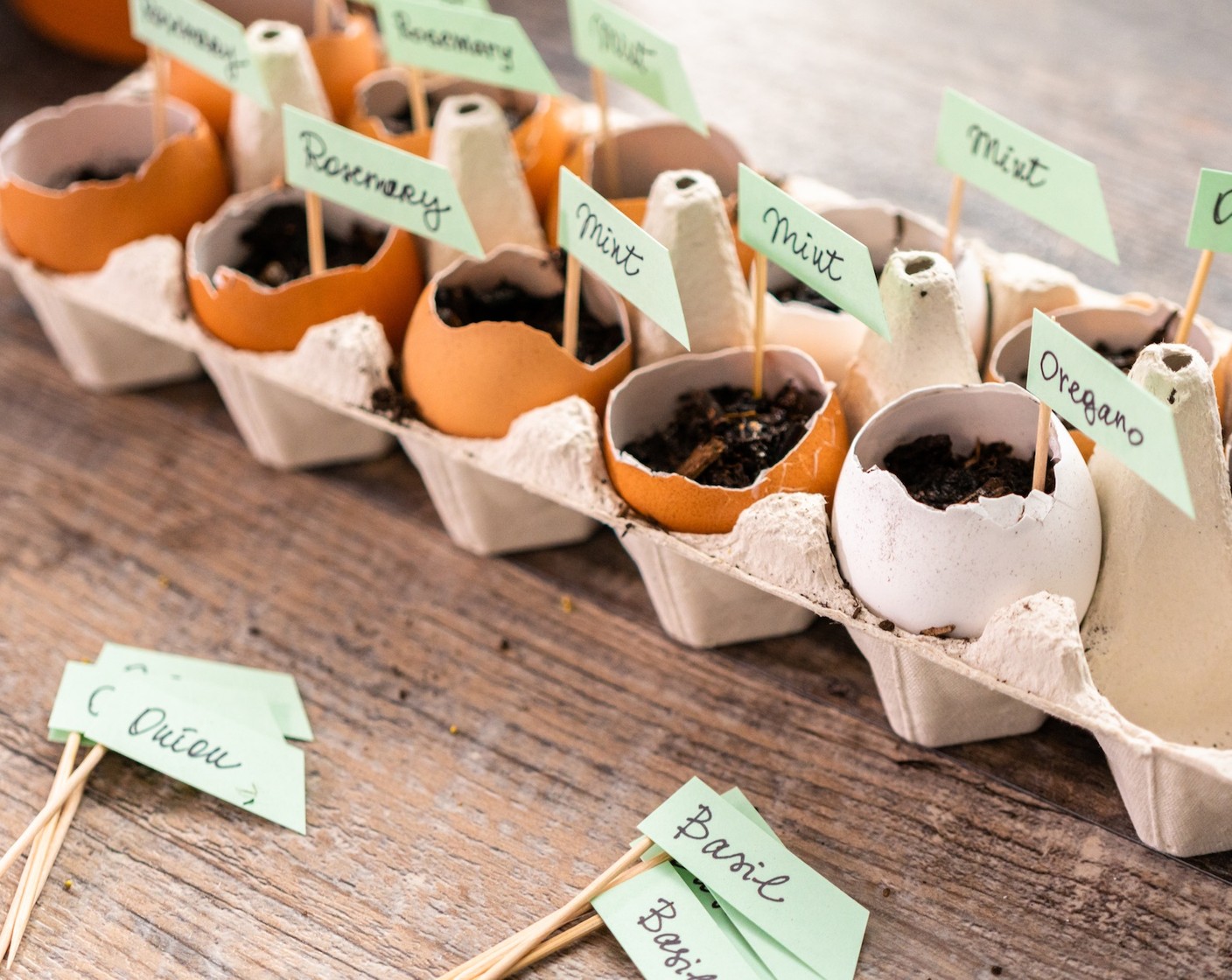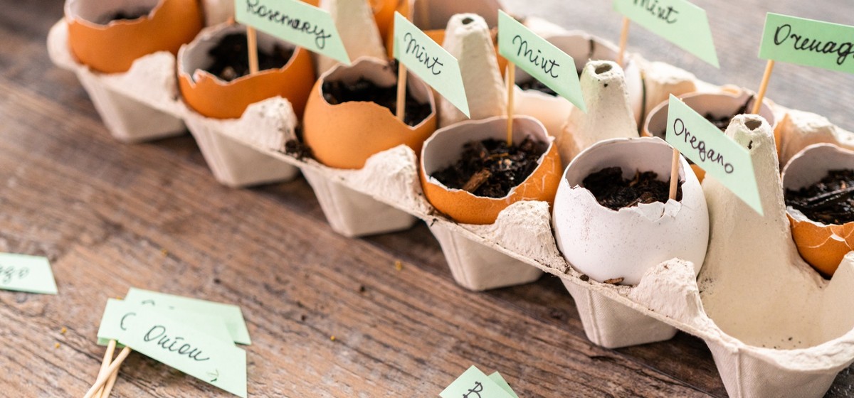 1. Platziert die Eierschalen im Eierkarton und gebt vorsichtig bis etwa zwei Drittel Blumenerde in die Schalen.