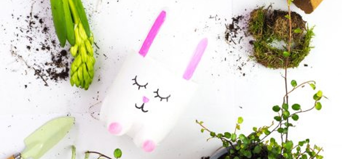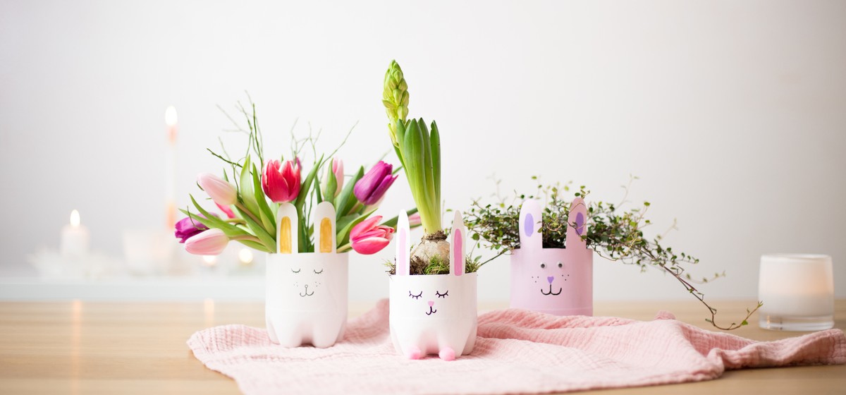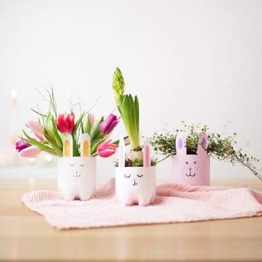 Nun kannst Du die Hasen nach Wunsch bepflanzen oder hübsche Blumen in die Hasen stellen.