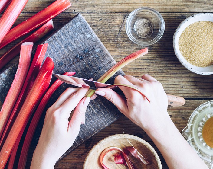 Die dunkelgrünen Blätter enthalten besonders viel Oxalsäure und sollten nicht verwertet werden, beispielsweise als Zutat in grünen Smoothies. Auch die Schale enthält viel Oxalsäure. Um den Gehalt zu reduzieren, sollte Rhabarber immer geschält werden. Auch das Dämpfen oder Kochen des Gemüses entzieht ihm weitere Säure.