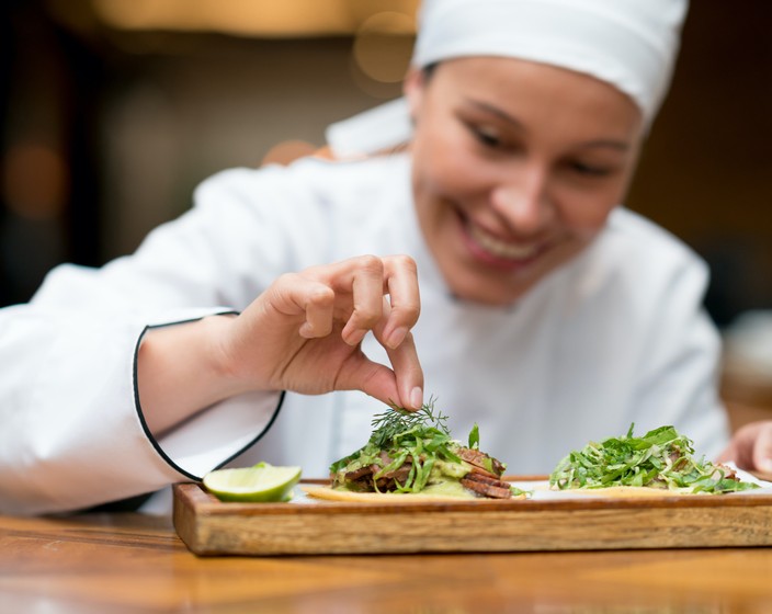 Unser Auge erfasst Dinge in gerade Anzahl schneller als diejenigen in ungerader Anzahl. Dieses Phänomen kannst du dir zunutze machen, indem du die einzelnen Komponenten in ungerader Anzahl anrichtest. Das gilt auch für die Dekoration. Serviere beispielsweise nur eine Cocktailtomate, statt zwei. Oder drei Blättchen Basilikum. Fünf Ravioli sehen interessanter aus als vier und so weiter.