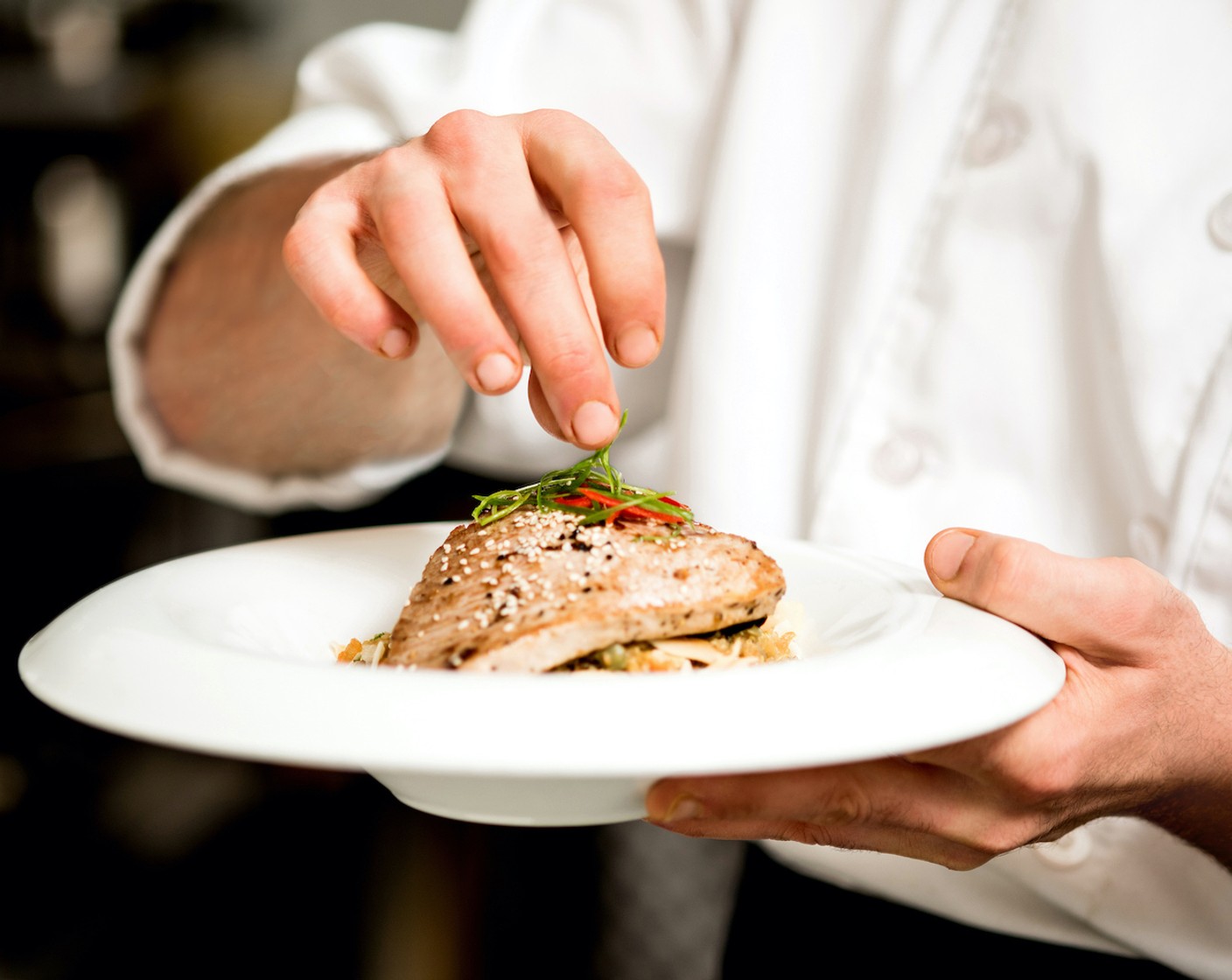 Ein Topping oder eine Garnitur sollte immer auch geschmacklich mit den Speisen auf dem Teller harmonieren und dem Gericht den letzten Schliff geben. Zu Kartoffelgerichten passt beispielsweise Rosmarin sehr gut dazu. Ein hübsch geformter Kreis aus Kartoffelstock mit etwas frischem Rosmarin darübergestreut, spricht das Auge und den Gaumen gleichermassen an. Das Topping und die Garnitur dürfen geschmacklich nur ergänzen, jedoch nicht dominieren. Beispielsweise fein aufgeschnittene Radieschen über einen Salat gestreut, verleihen ihm zwar eine farblich interessante Optik, doch stechen sie aufgrund ihrer Schärfe hervor, was nicht jedermanns Geschmack trifft.