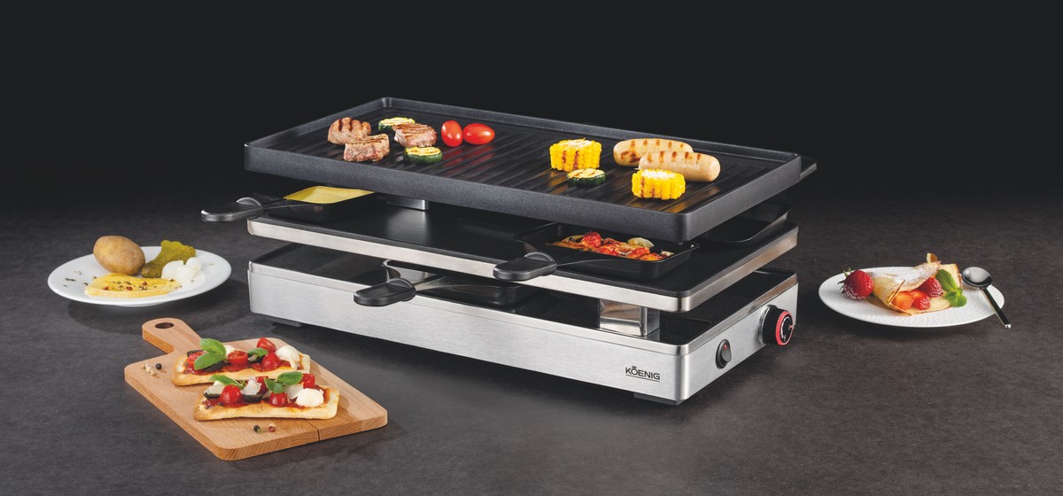 Hier findest du mehr Informationen zum König Pizza Raclette-Grill 4-in-1.