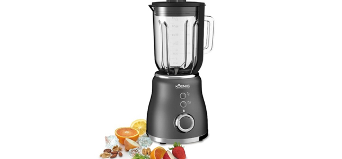 Für frisch gepresste Smoothies benötigt man auf jeden Fall einen guten Standmixer. Unsere Empfehlung ist der Standmixer "The Sharp" von KOENIG. Denn für den Standmixer ist das Zerkleinern, Mixen und Zubereiten von Smoothies und Crushed Ice ein Kinderspiel. Durch den Drehknopf kann man die Geschwindigkeit einfach und individuell einstellen. Der Standmixer ist aufgrund seiner vielfältigen Einsatzmöglichkeiten, ideal für die Zubereitung von vitaminreichen Smoothies und kann sogar feste und gefrorene Zutaten zerkleinern.