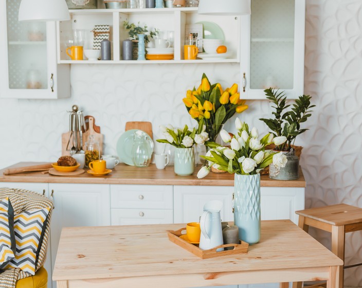 Von März bis Mai haben Hyazinthen, Tulpen und Pfingstrosen Saison. Als grosser Strauss am Fenster oder auf dem Tisch kommt ihre Pracht besonders gut zur Geltung. Auch Narzissen und blühende Zweige dürfen nicht fehlen. Wer empfindlich auf frische Blumen reagiert, kann auch auf Kunstblumen zurückgreifen. Dabei spielt die Qualität eine wichtige Rolle, damit nicht sofort ins Auge sticht, dass es sich um künstliche Blumen handelt. Qualitativ hohe Kunstblumen sind von echten kaum zu unterscheiden.