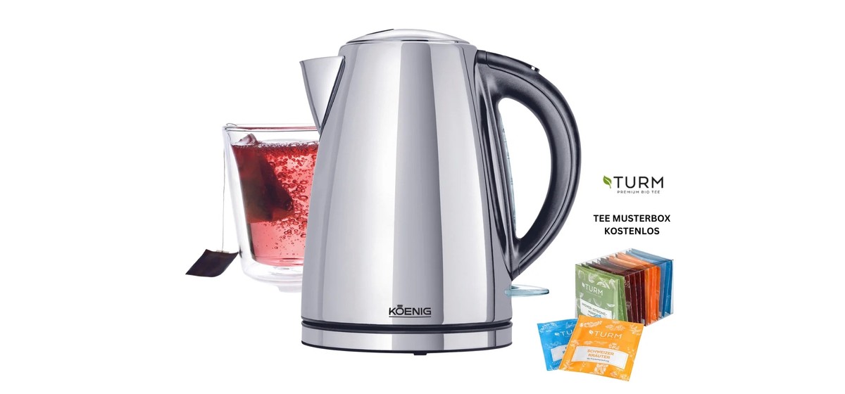 Für Teeliebhaber bietet ein hochwertiger Wasserkocher die ideale Lösung, um Aromen optimal zu entfalten. Der Wasserkocher Chrome Line von KOENIG kombiniert edles Edelstahl-Design mit praktischen Funktionen für die perfekte Tee-Zubereitung. Dank des herausnehmbaren, auswaschbaren Kalkfilters und des verdeckten Heizelements wird das Wasser besonders rein erhitzt. Das grosse, seitliche Sichtfenster ermöglicht eine präzise Wasserstandsanzeige, während die praktische Deckelöffnung für eine komfortable Handhabung sorgt. Die automatische Abschaltfunktion garantiert Sicherheit und Energieeffizienz – perfekt für entspannte Osterstunden mit Familie und Freunden.
