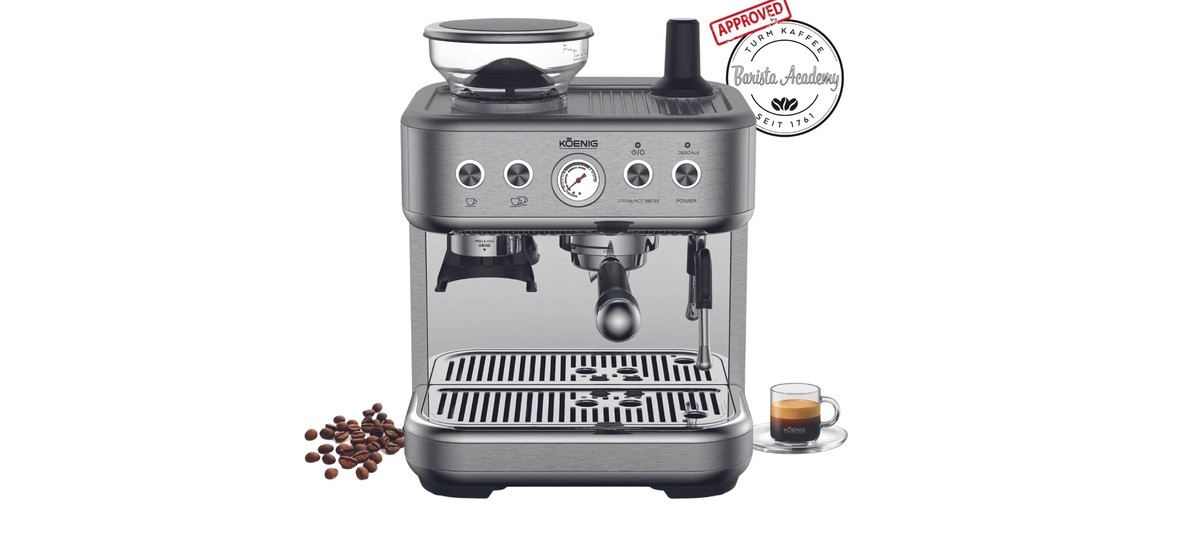Für Kaffeeliebhaber darf ein vollmundiger Espresso beim Osterbrunch nicht fehlen. Die Baressa Espressomaschine von KOENIG liefert intensiven Kaffeegenuss in Barista-Qualität. Die integrierte Kaffeemühle mahlt die Bohnen frisch vor der Extraktion und sorgt so für ein unvergleichliches Aroma. Mit 20 Mahlgradeinstellungen, 15 Bar Pumpendruck und einem präzisen Manometer gelingt jeder Espresso perfekt. Dank der beheizten Tassenabstellfläche bleibt der Kaffee angenehm warm, während die Dampf- und Heisswasserdüse auch Cappuccino oder Americano in Perfektion zubereitet – Mit der Espressomaschine von KOENIG.