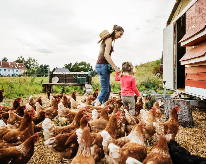 Hühner in Freilandhaltung dürfen täglich auf die Weide. Pro Tier müssen mindestens 2,5 Quadratmeter Freilauf möglich sein. Sie haben Sitzstangen, Lege-Nester und einen Aussenklima-Bereich zur Verfügung. Die Freilandhaltung wird den Bedürfnissen der Tiere gerechter als die Bodenhaltung.