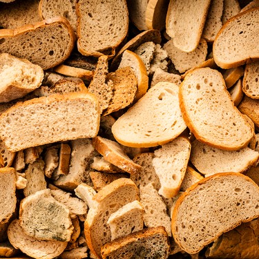 Gewürfelte Brotreste eignen sich hervorragend für Croûtons, mit denen du eine Suppe oder einen Salat verfeinern kannst. Die Würfel einfach in der Pfanne mit etwas Butter oder Olivenöl goldbraun anbraten, nach Belieben würzen - fertig!
