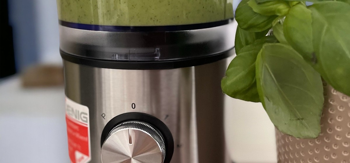 Um das Pesto einfach mixen zu können, empfehlen wir dir den Multi Zerkleinerer Steel Line von KOENIG. Der Multi-Zerkleinerer ist fürs Mixen und Hacken von verschiedensten Lebensmitteln geeignet. Selbst das Zerkleinern von härteren Lebensmitteln wie Parmesan und Nüssen sind kein Problem.