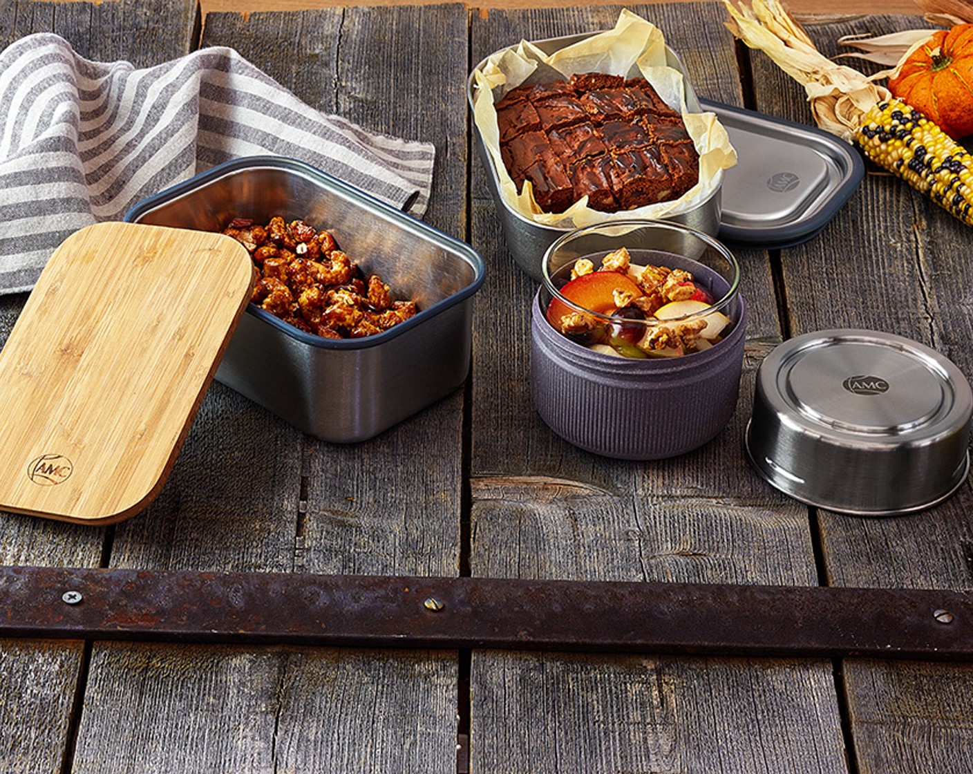 Du willst deine Lieblingssandwiche und -Snacks von zu Hause bei deinem nächsten Herbstausflug mitnehmen? Die neue AMC To-Go Kollektion besteht aus fünf verschiedenen Küchenhelfern, mit welchen du vollständig ausgestattet bist, um deine selbstgemachten Mahlzeiten und Getränke überallhin mitzunehmen. Von der Lunch-Box, zur Sandwich Box bis zum isolierten Reisebecher, mit den To-Go Produkten kannst du es dir immer und überall schmecken lassen.