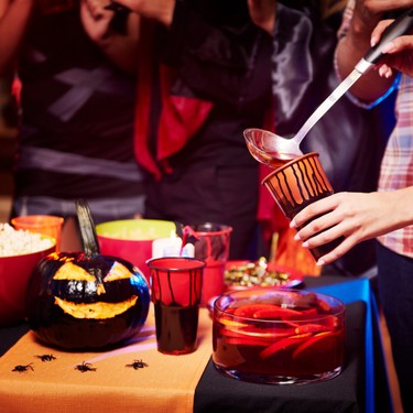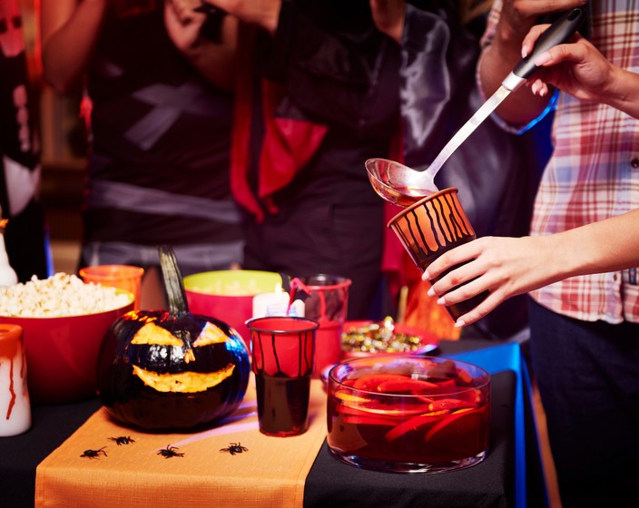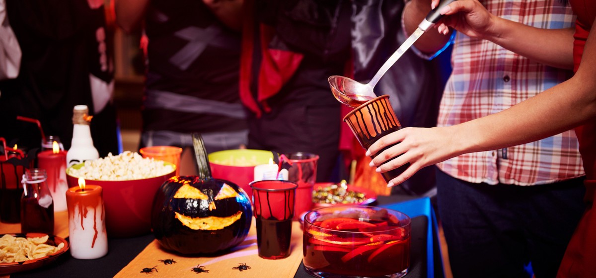 Bereiten Sie Halloween-inspirierte Snacks und Leckereien zu. Fingerfood in Form von Hexenbesen, Kürbispizza und Mumien-Hotdogs sind immer ein Hit.