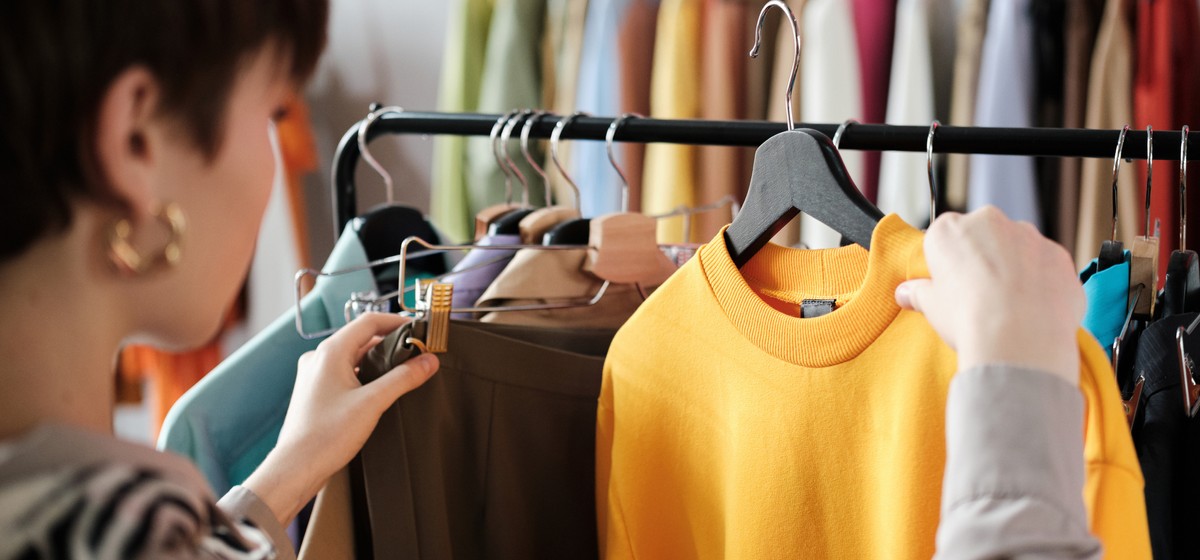 Für Kleidungsstücke, die bereits in unserem Schrank hängen, gilt, diese so lange wie nur möglich zu nutzen. Bei kleinen Rissen oder Makeln könntest du selbst zu Nadel und Faden greifen, oder du holst dir Hilfe in der Schneiderei oder einem Reparier-Café. Du könntest dir auch überlegen, wie die Kleidungsstücke noch anders nutzbar wären. Vielleicht als Schlaf-Shirt, zum Sport machen oder für die Kinder als Malschürze?
