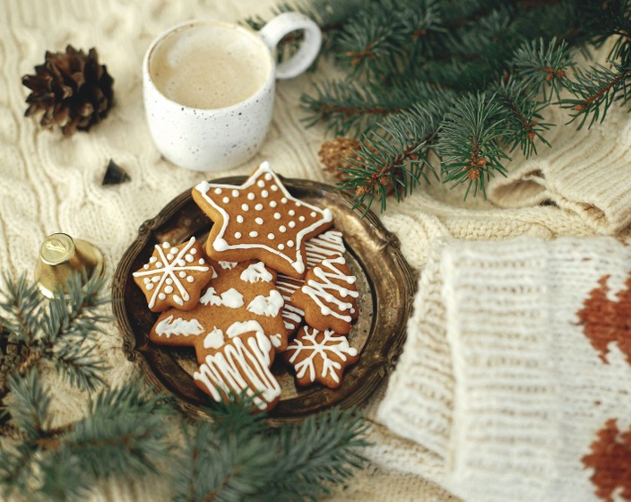 Manchmal tut es gut, sich in den eigenen Wänden einzuigeln und auf dem Sofa herumzulümmeln. Schnapp dir ein paar Guetzli, eine heisse Schokolade, Punsch, Chai oder Glühwein und geniesse das Weihnachtsprogramm im Fernsehen oder streame ein paar Folgen deiner Lieblingsserie.