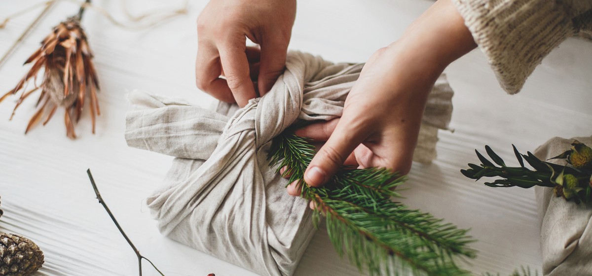 Wähle Geschenkpapier-Alternativen oder Verpackungen, die wiederverwendbar sind wie z.B. Recyclingpapier, Stoff oder biologisch abbaubares Papier. Als festliche Dekoration können auch Tannenzweige das Geschenk schmücken.