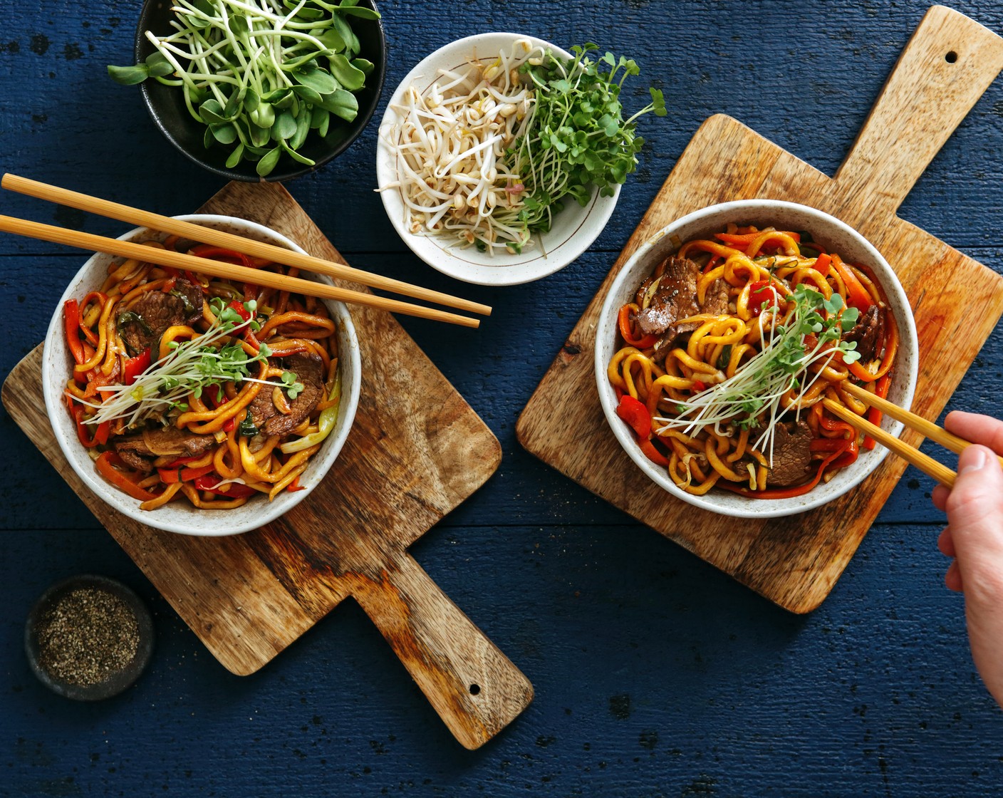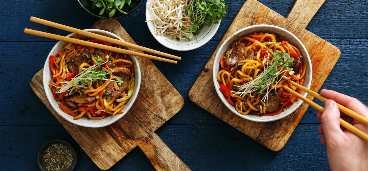 Ein Wok ist das ultimative Werkzeug in der chinesischen Küche, um grandiose One-Pot-Rezepte zuzubereiten. Mit seiner hohen Hitze und schnellen Garzeiten ist er ideal für die Zubereitung einer Vielzahl an Gerichten. Möchtest du also mal chinesische gebratene Nudeln zu Hause zubereiten? Dann wähle zunächst zwischen Reis-, Eier- oder Udon-Nudeln deine Liebsten aus und brate sie mit frischem Gemüse wie Brokkoli, Karotten und Frühlingszwiebeln an. Einen Schuss Sojasauce und Sesamöl dazu und voilà – dein erstes chinesisches Gericht ist fertig!