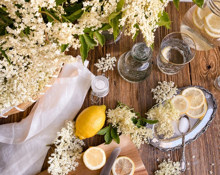Der Holunder blüht über den ganzen Juni bis in den Juli hinein. Die herrlich duftenden Blüten kannst du in verschiedene kulinarische Köstlichkeiten verwandeln, wie zum Beispiel in aromatischen Sirup oder einen feinen Brotaufstrich.