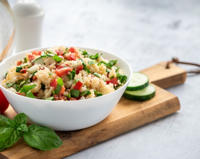 Perfekt für den Sommer und die Grillsaison: Couscous Salate kannst du als Hauptgericht oder als Beilage servieren. Dank der vielen Zubereitungsmöglichkeiten von Couscous wird dir garantiert nie langweilig. Mit verschiedenen Kräutern und Gemüsesorten kannst du Couscous Salat nach deinem Geschmack verfeinern. Wenn es dir schmeckt, kannst du auch Früchte in deinen Couscous Salat geben. Das Beste an diesen Salaten ist, dass Couscous viele gesunde Mineralstoffe wie Kalium und B-Vitamine, vor allem Vitamin B3 enthält.
