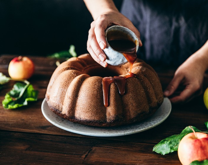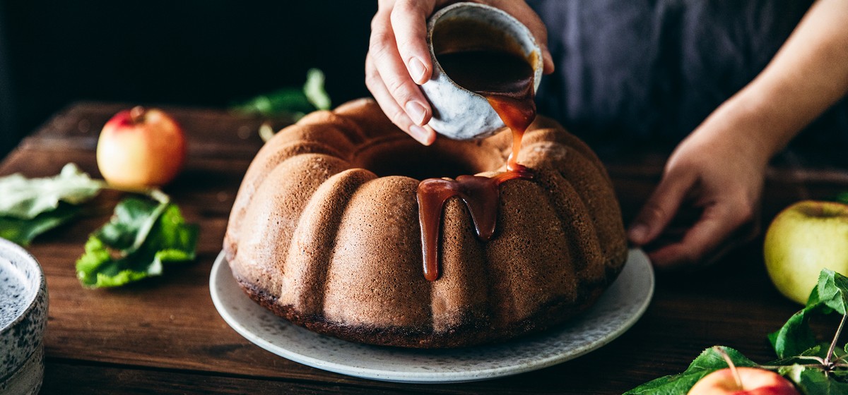 Die Kombination aus Apfel und Caramel-Geschmack ist einfach unwiderstehlich! Das Apfelmus für diesen saftigen Kuchen kannst du ganz einfach selbst herstellen, am besten aus frischen regionalen Äpfeln!