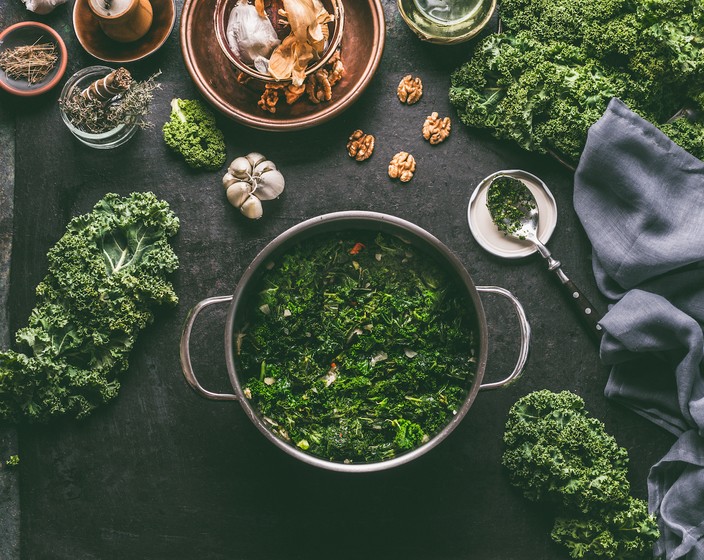 Der Grünkohl hat in letzter Zeit stark an Beliebtheit gewonnen und ist vom bodenständigen Wintergemüse zum Lifestyle-Produkt avanciert. "Kale" (englisch für Grünkohl) ist beliebter denn je und wird nicht nur gerne gegessen, sondern auch gerne getrunken - als grüner Smoothie. 100 Gramm des gesunden Grüns decken den gesamten Tagesbedarf an Vitamin C, hinzu kommen Kalzium, Vitamin E und Vitamin A. Und das Ganze mit gerade mal 37 kcal und unter einem Gramm Fett pro 100 Gramm Kohlgemüse.