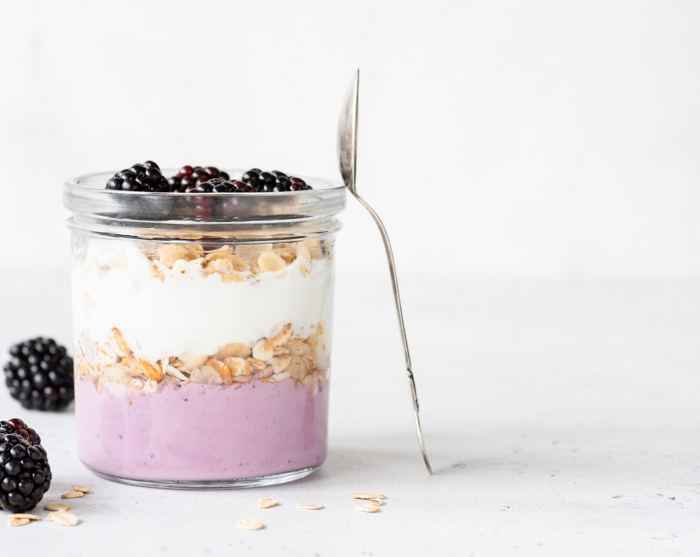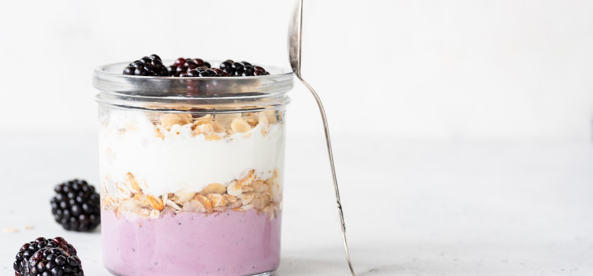 Unser Joghurt-Brombeer-Trifle mit Zitronen-Thymian-Mürbeteig ist ein Fest für die Sinne! Luftiger Schlagrahm und griechischer Joghurt vermischen sich mit tiefrotem Brombeerpüree, was ein wunderschönes Violett ergibt. Ein echter Hingucker!