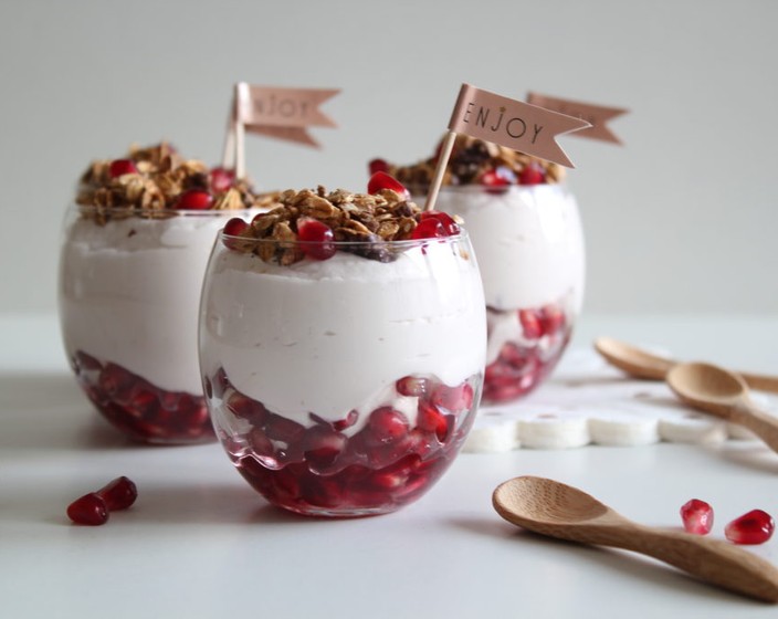 Die samtige, reichhaltige Mascarpone-Creme schmilzt förmlich auf der Zunge. Eingebettet in diese cremige Köstlichkeit findest du die süss-säuerlichen Granatapfelkerne, die für eine erfrischende Note sorgen.