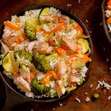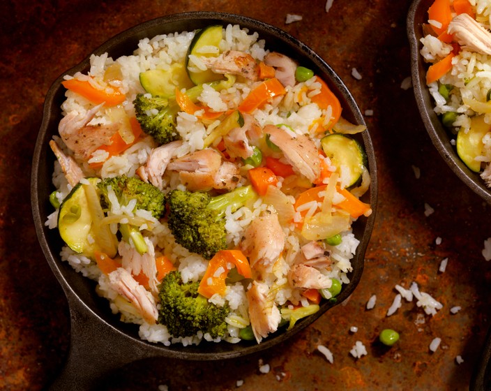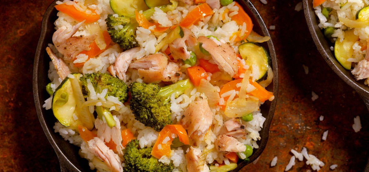 Eine weitere Variante ist die Ebly-Reste-Pfanne: Den Weizenreis mit Gemüse für 20 Minuten im Steamer. Diese Pfanne ist ein schnelles und einfaches Gericht, das sich bestens für die Resteverwertung eignet.