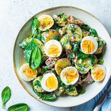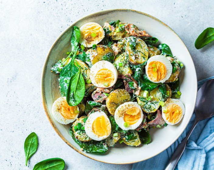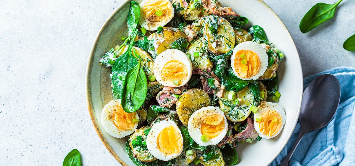 Dieses Rezept kombiniert klassische Kartoffelsalate mit dem typischen Geschmack von hart gekochten Eiern. Gekochte, in mundgerechte Würfel geschnittene Kartoffeln werden mit gehackten Eiern, feinen Frühlingszwiebeln und frischem Dill vermischt. Für das Dressing kreiert man eine Mischung aus Senf, Essig, Olivenöl, Salz und Pfeffer, die sowohl die Kartoffeln als auch die Eier wunderbar umhüllt. Hartgekochte Eier passen unter anderem gut in den "Holländischen Kartoffelsalat". Eine Abwandlung, die Tradition und Moderne gekonnt vereint.