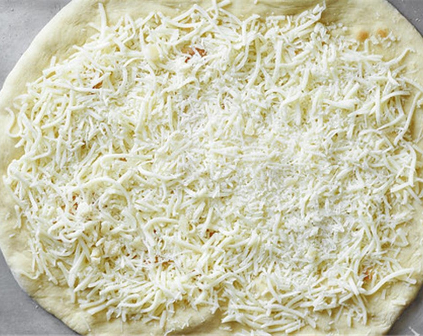 Mozzarella-Käse (450 g) zerkleinern. Pecorino (4 Esslöffel) reiben. Zwiebel, rot (1) würfeln und Pancetta (225 g) in dünne Scheiben schneiden.