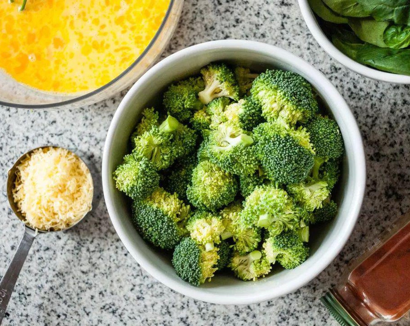 Locker und voller Gemüse! Diese Brokkoli-Spinat-Cheddar-Frittata eignet sich hervorragend zum Frühstück, Mittag- oder Abendessen! Um sie milchfrei zu machen, verwende Brühe statt Milch und lass den Käse weg oder verwende veganen Käse.
