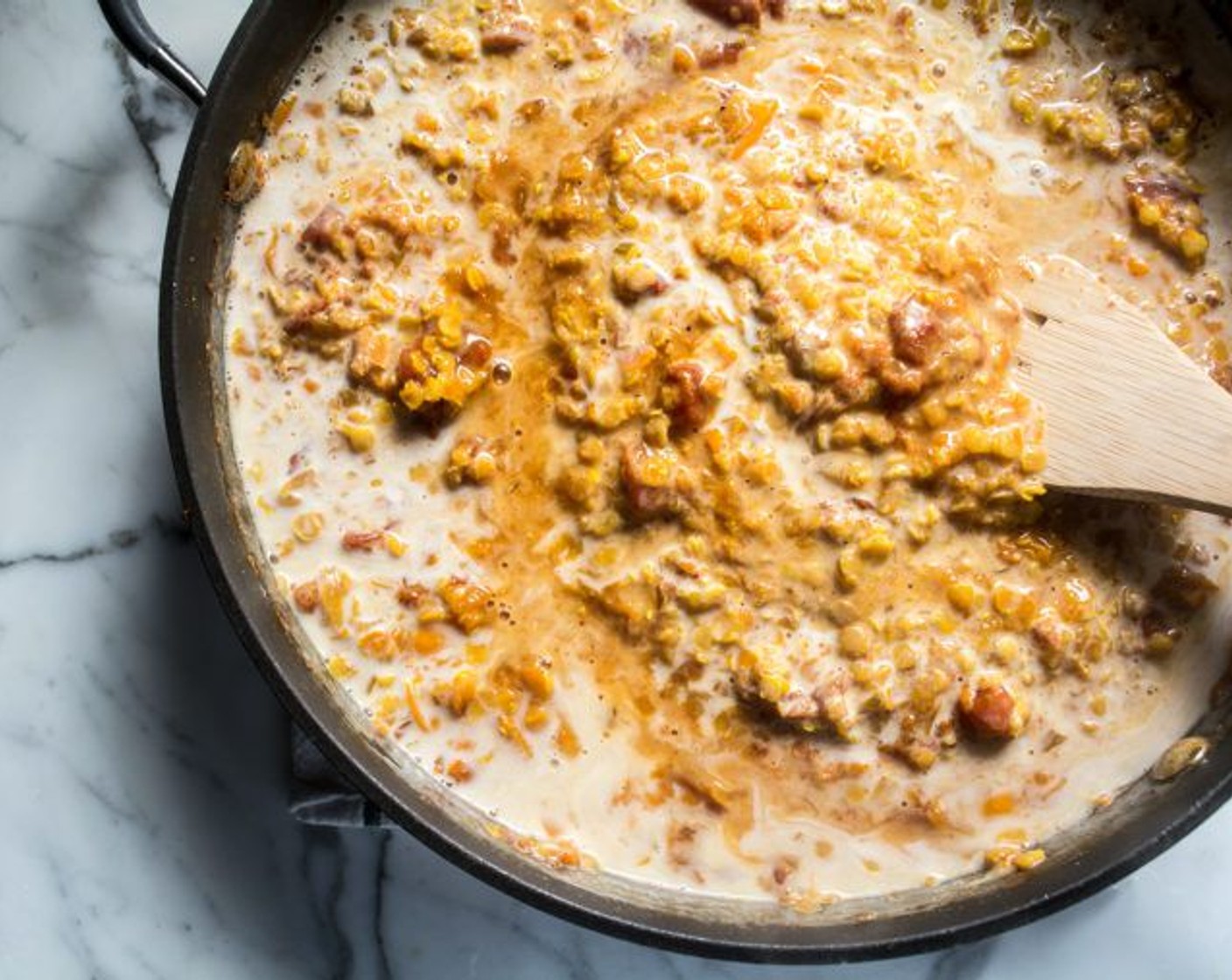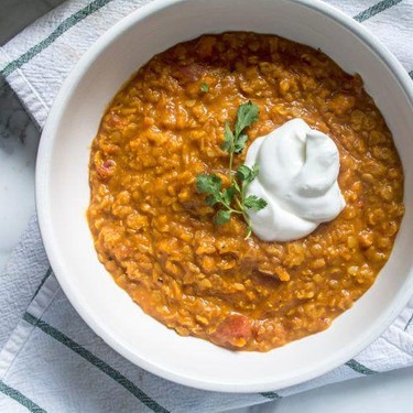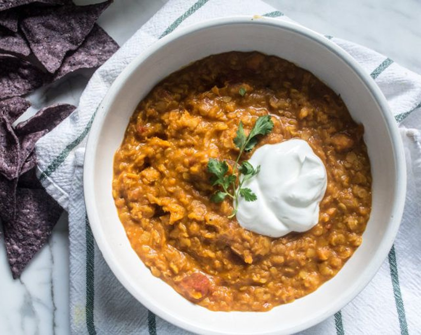 Diese goldene Süsskartoffel-Linsensuppe mit Kokosmilch ist deftig und sättigend, aber dennoch leicht und cremig und damit absolut sommertauglich!