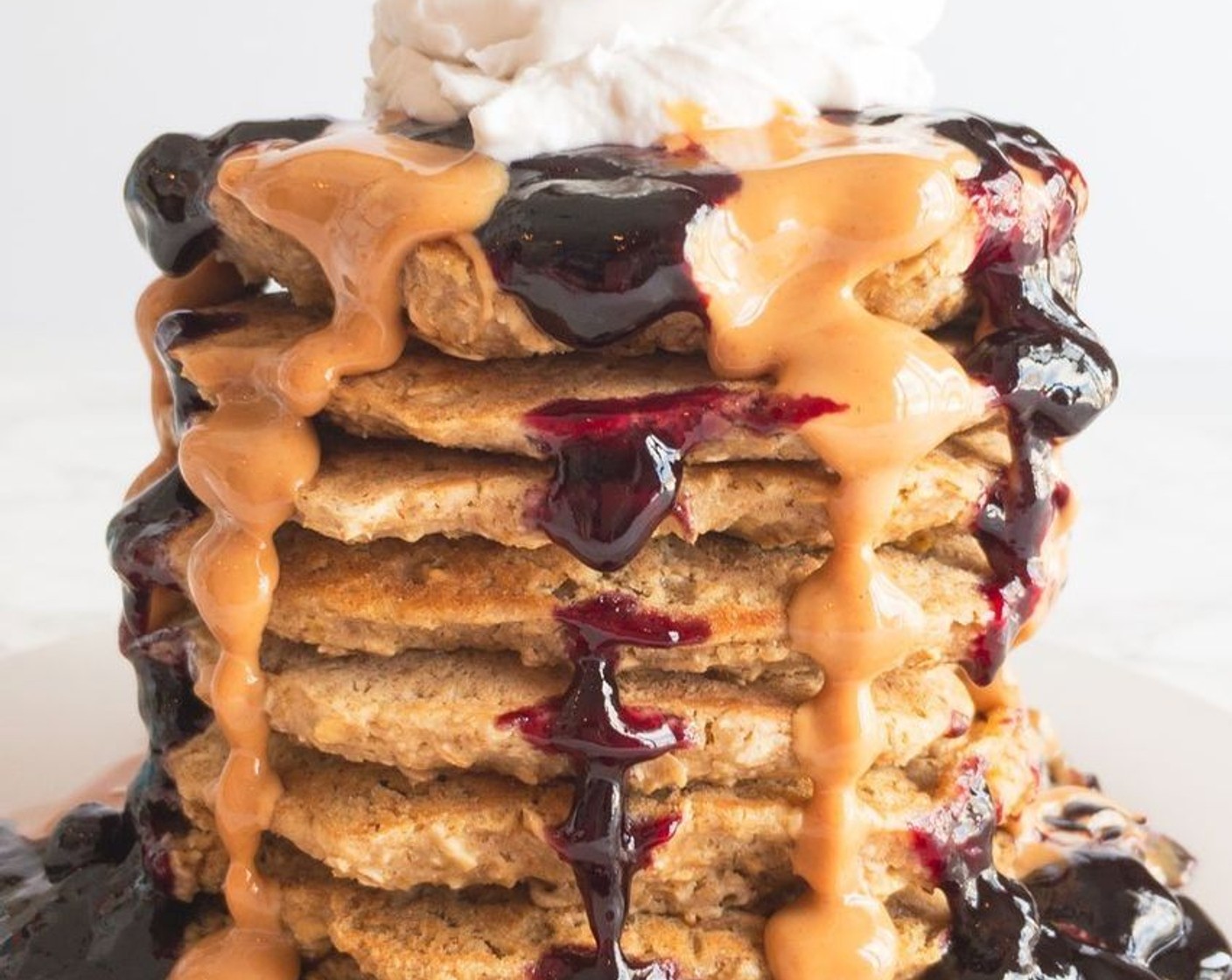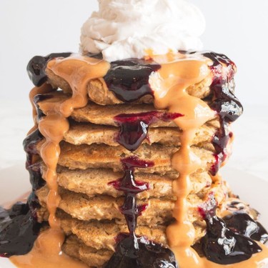 Wer liebt noch Erdnussbutter und Gelee? Diese veganen Pfannkuchen sind der perfekte Wochenendgenuss! Ergibt etwa 8 Pfannkuchen.
