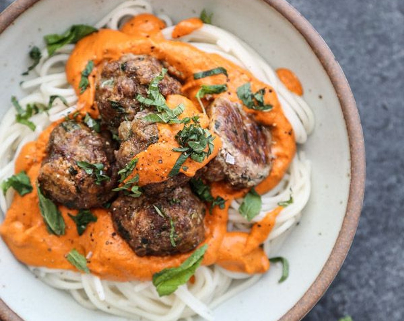 Diese marokkanisch inspirierten Lammfleischbällchen werden mit Kreuzkümmel und Minze gewürzt, im Ofen saftig gebacken und sind in 30 Minuten zu einem köstlichen Abendessen zubereitet! Die Fleischbällchen-Mischung, die ähnlich wie Kefta ist, ist glutenfrei. Ich serviere sie mit einer kochfertigen Romesco-Sauce, die genauso schnell und einfach ist!