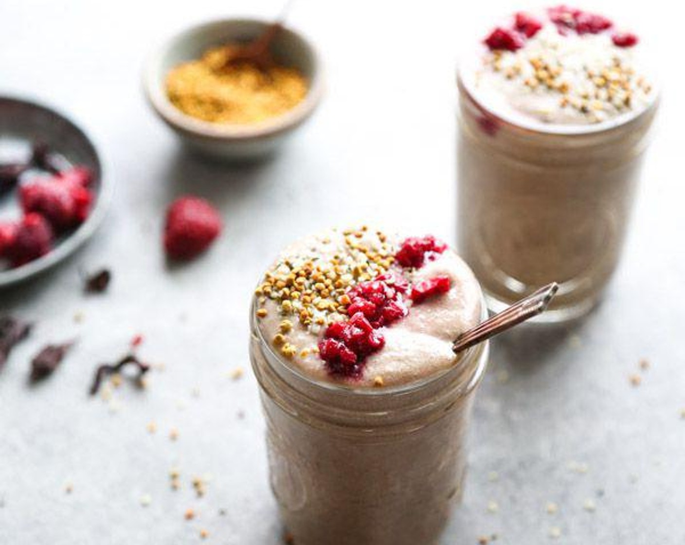 Dieser Smoothie ist eher herzhaft, aber eine erfrischende Art der Entgiftung am Morgen. Hibiskusblüten haben einen herrlich blumigen, säuerlichen Geschmack und eignen sich perfekt für die Kombination mit frischen Beeren. Wenn Zucchini-Smoothies nicht dein Ding sind und du etwas süsse brauchst, Zucchini einfach durch eine Banane ersetzen. So wie er ist, ist dieser Smoothie zuckerarm.