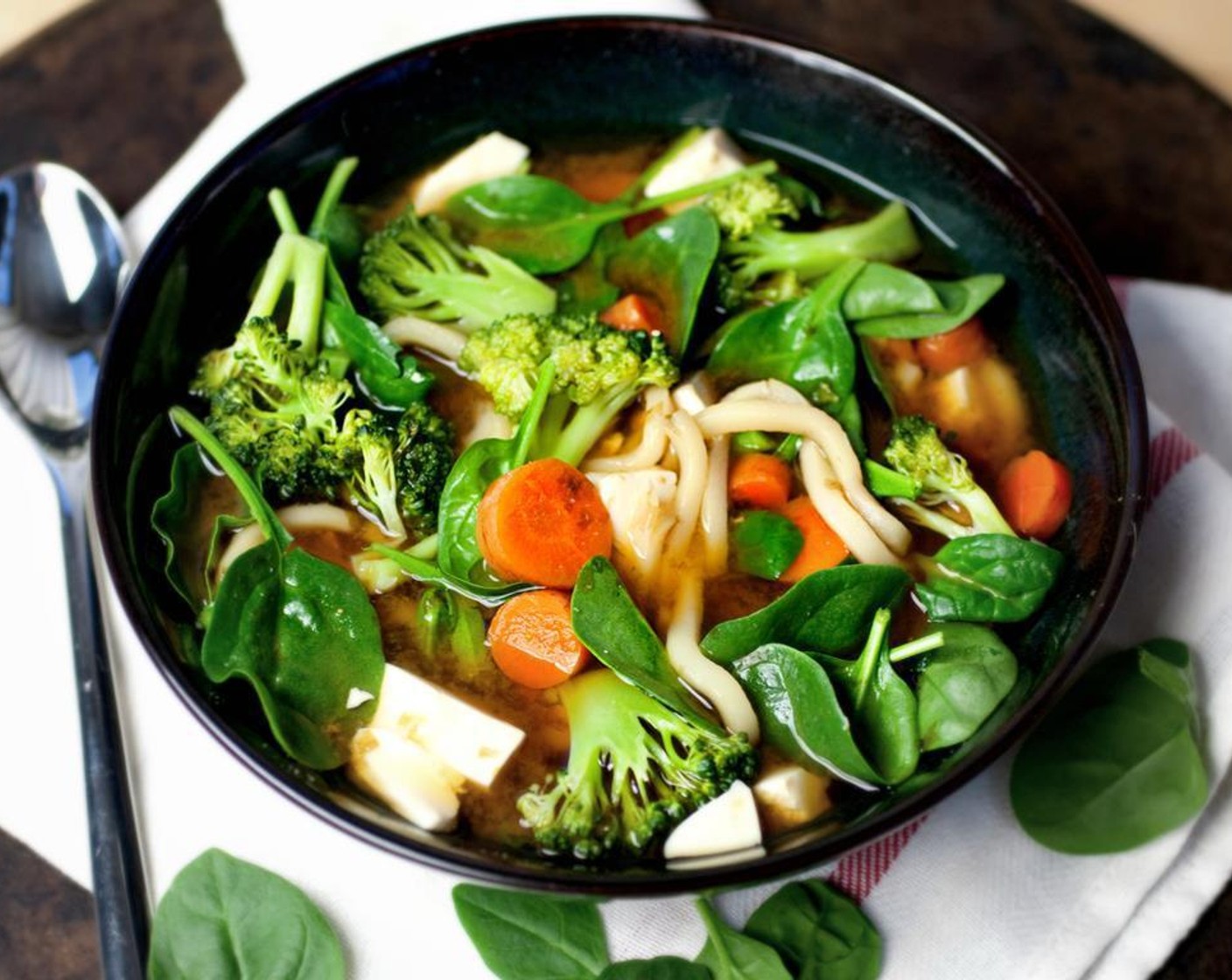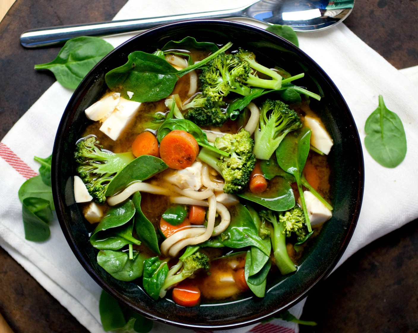 Miso-Udon-Nudelsuppe ist etwas für jeden Tag! Eine kräftige Misobrühe mit knackigem Gemüse, cremigem Tofu und Udon-Nudeln. Vegan, einfach, lecker!