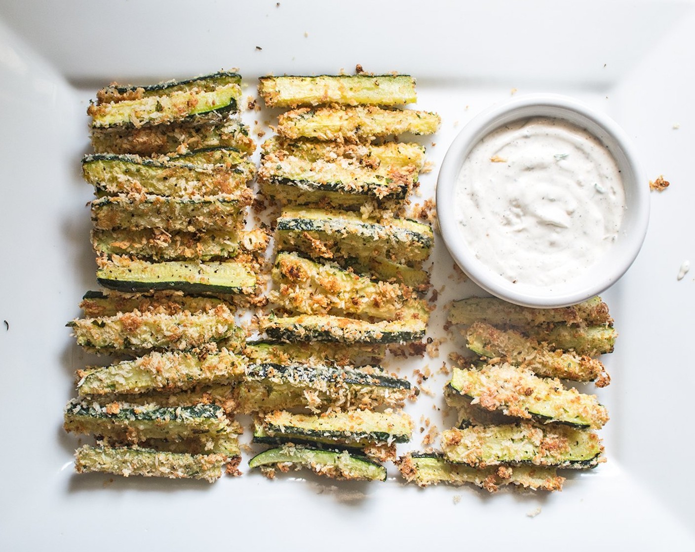 Unsere gebackenen Parmesan-Zucchini-Pommes werden aus frischen Zucchini-Sticks zubereitet, die mit Parmesan und Gewürzen überzogen und goldbraun gebacken werden, um eine knusprige Perfektion zu erreichen. In Kombination mit der Aioli sind sie ein wahrer Genuss. Der Aioli Dip lässt sich in nur wenigen Minuten mit griechischem Joghurt, Mayo, frischem Zitronensaft, Knoblauch, Salz und Pfeffer zu einem cremigen und aromatischen Dip zubereiten. Ob als köstliche Vorspeise, als Beilage zum Lieblingsgericht oder einfach als Snack zwischendurch - diese Zucchini-Pommes werden garantiert zum Highlight auf jedem Teller.
