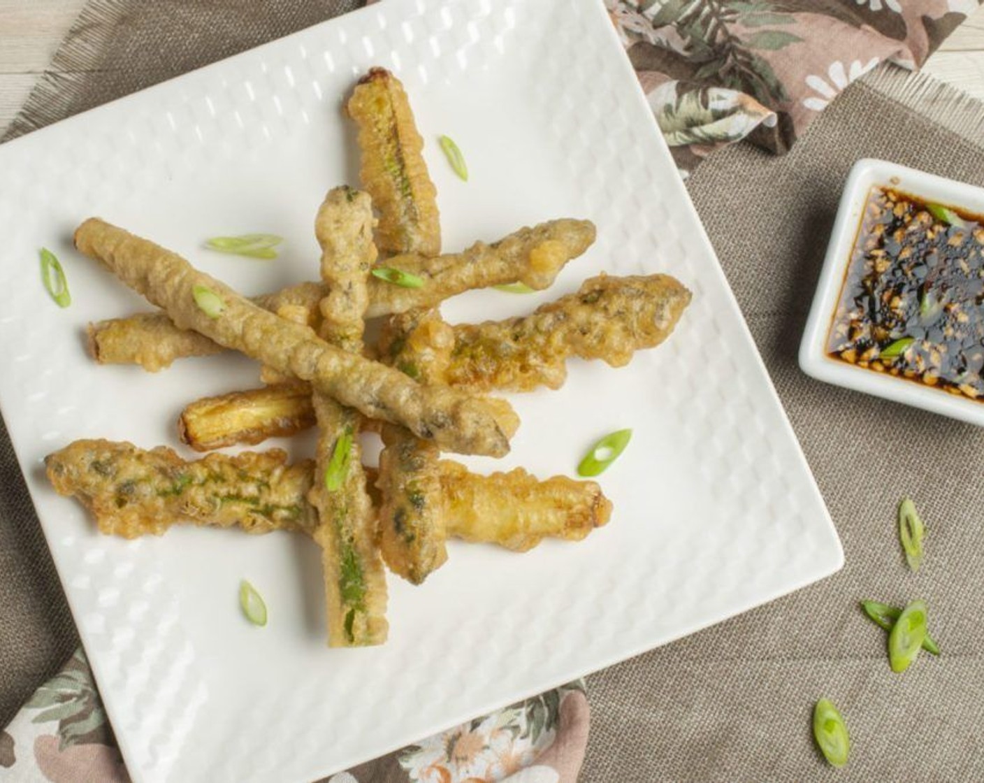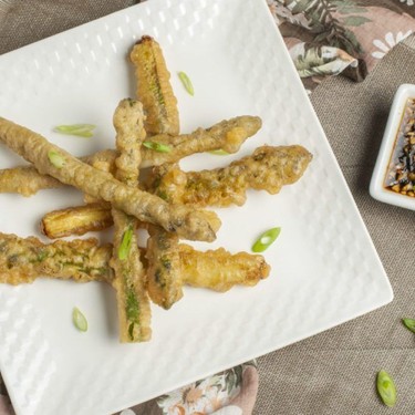 Knackige grüne Spargeln im Teigmantel goldbraun gebraten, schmecken mit einer Sojasauce zum Dippen hervorragend.