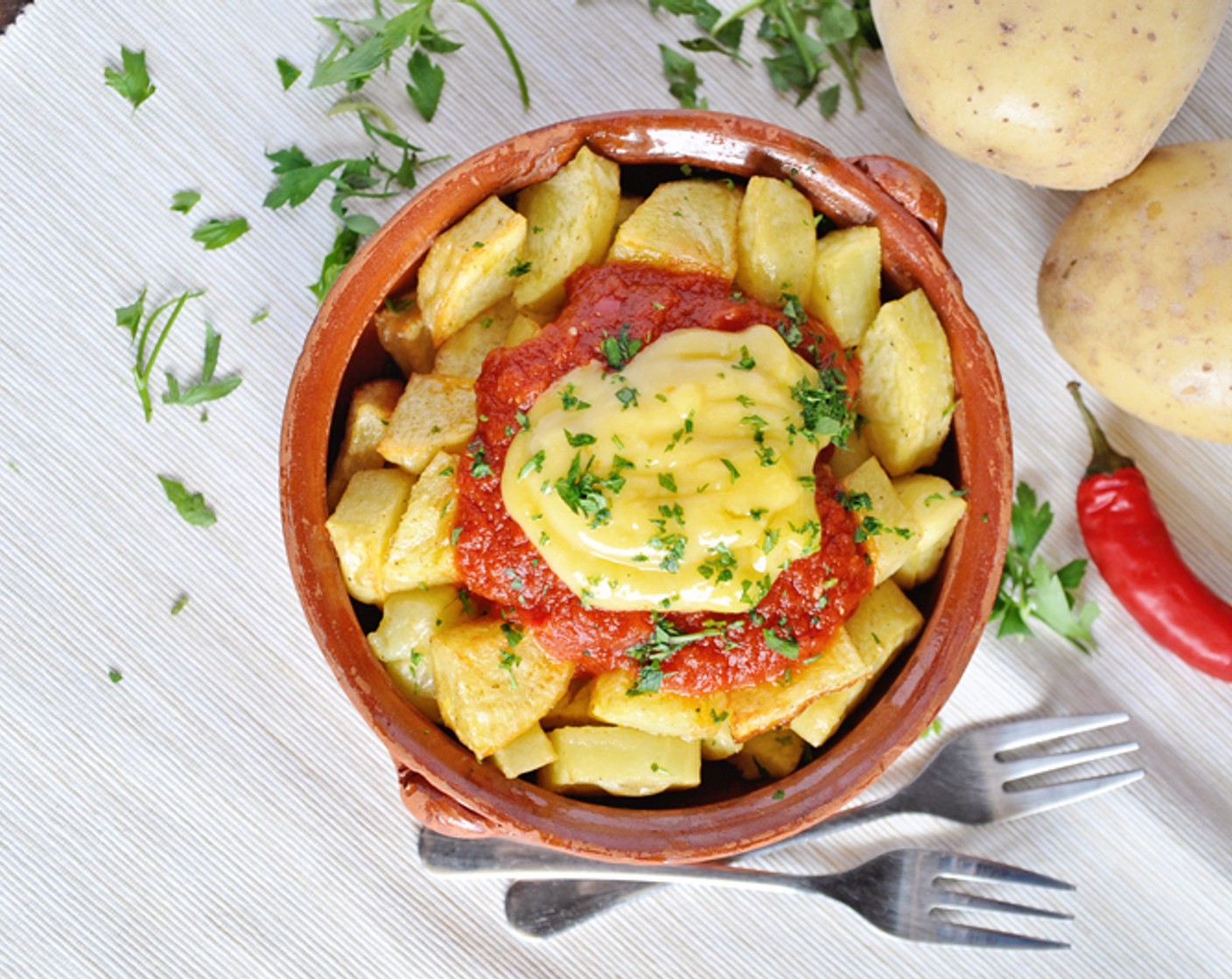 Patatas bravas sind eines der beliebtesten Tapas-Gerichte Spaniens. Nach einer Kostprobe weiss man auch warum. Es ist ein sehr einfaches Gericht aus Kartoffeln, Brava-Sauce und hausgemachter Knoblauch-Aioli. Die Kombination all dieser Aromen sorgt für eine Explosion der Geschmacksrichtungen.