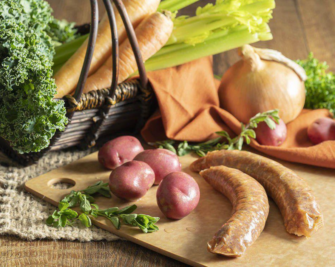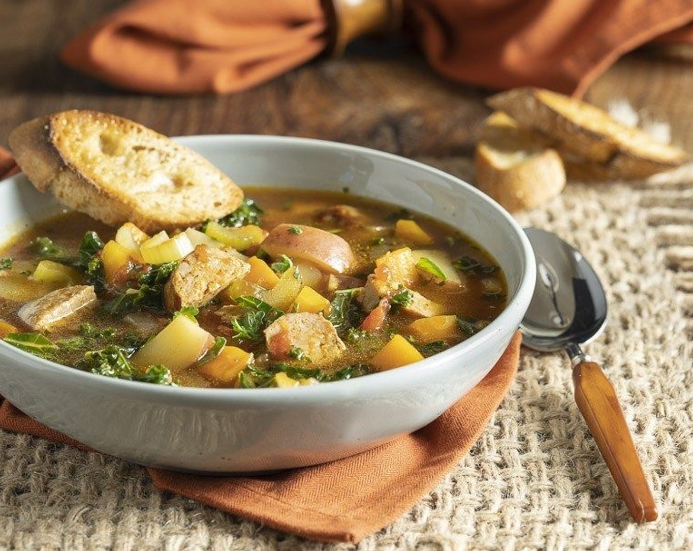 Es ist eine heimelige Suppe, die wärmend und herzhaft ist, mit einer reichhaltigen Brühe mit Tomaten, zarten Babykartoffeln, italienischer Wurst und Gemüse. Paprika, Knoblauch und frische Kräuter verleihen dieser rustikalen, Suppe zusätzliche Geschmackstiefe.