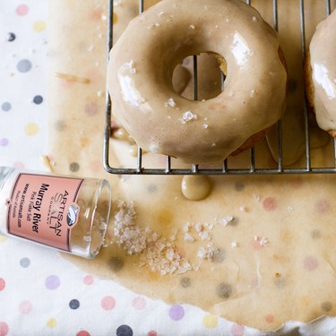 Diese Donuts sind mit einer Ahornglasur und einer Prise Meersalz überzogen. Eine glutenfreie und milchfreie Leckerei!