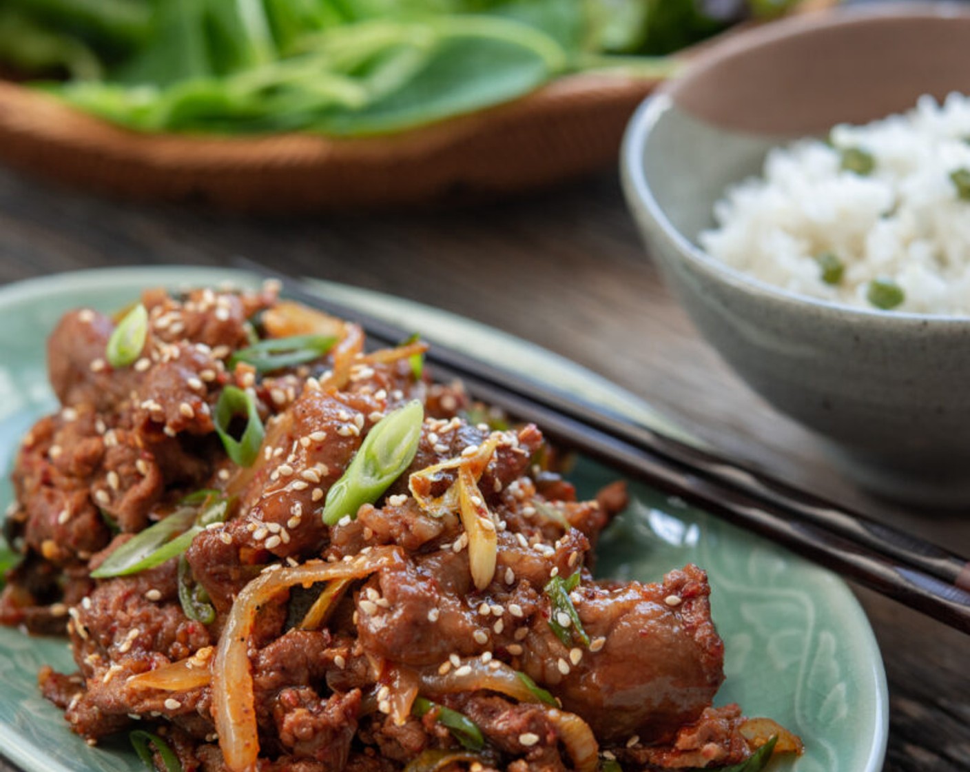 Mit diesem einfachen Rezept kann zu Hause koreanisches Bulgogi mit Schweinefleisch zubereitet werden. In 20 Minuten werden dünne Scheiben Fleisch mit einer würzigen Gochujang-Sauce angebraten. Diese Rezepttipps sind für eine hausgemachte Version, die genauso schmeckt wie Jeyuk Bokkeum aus dem Restaurant.