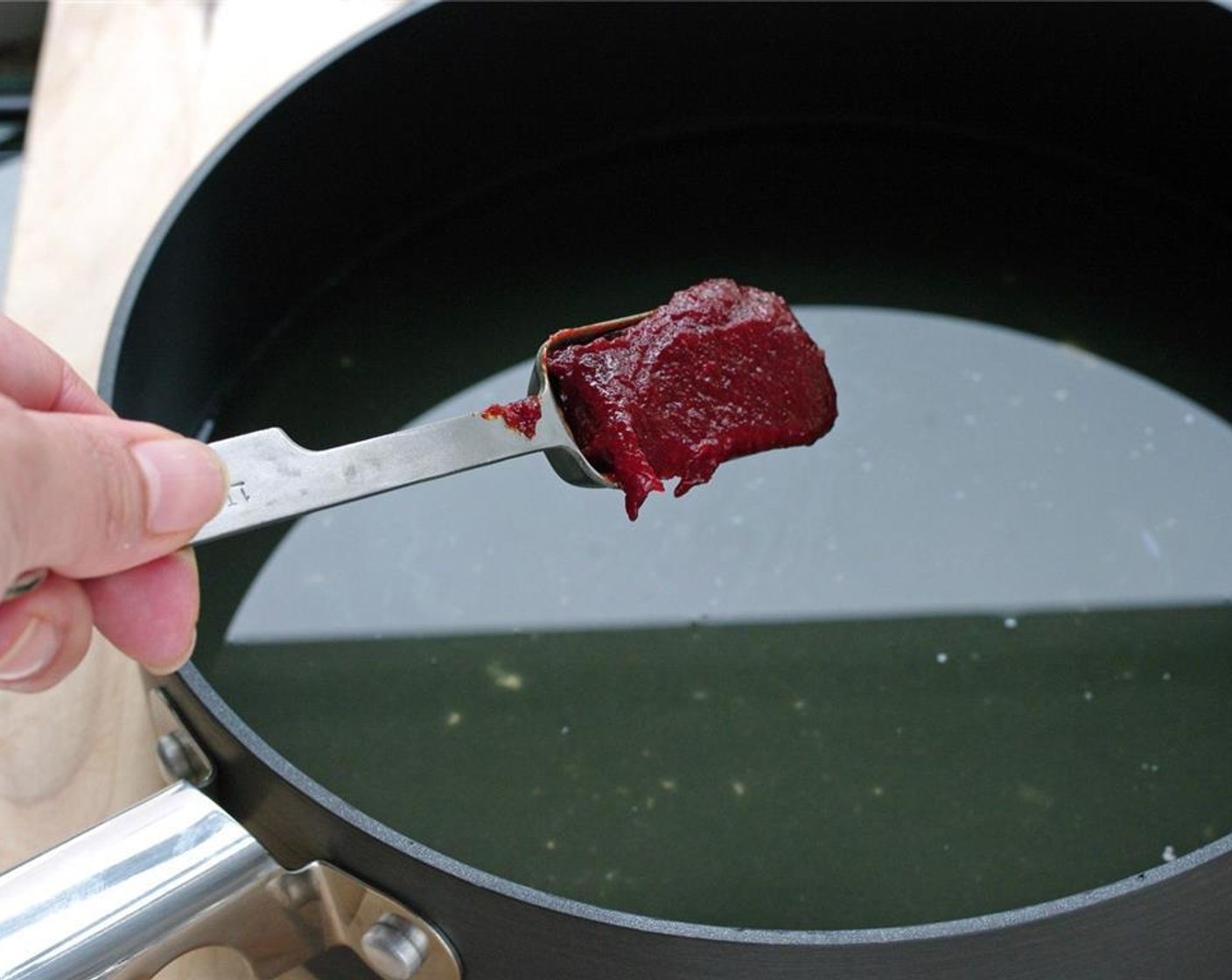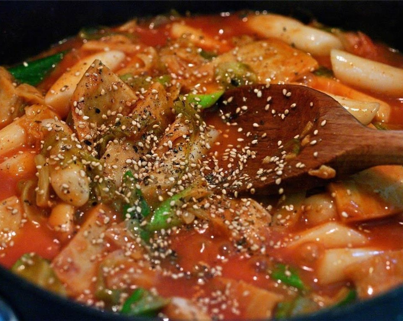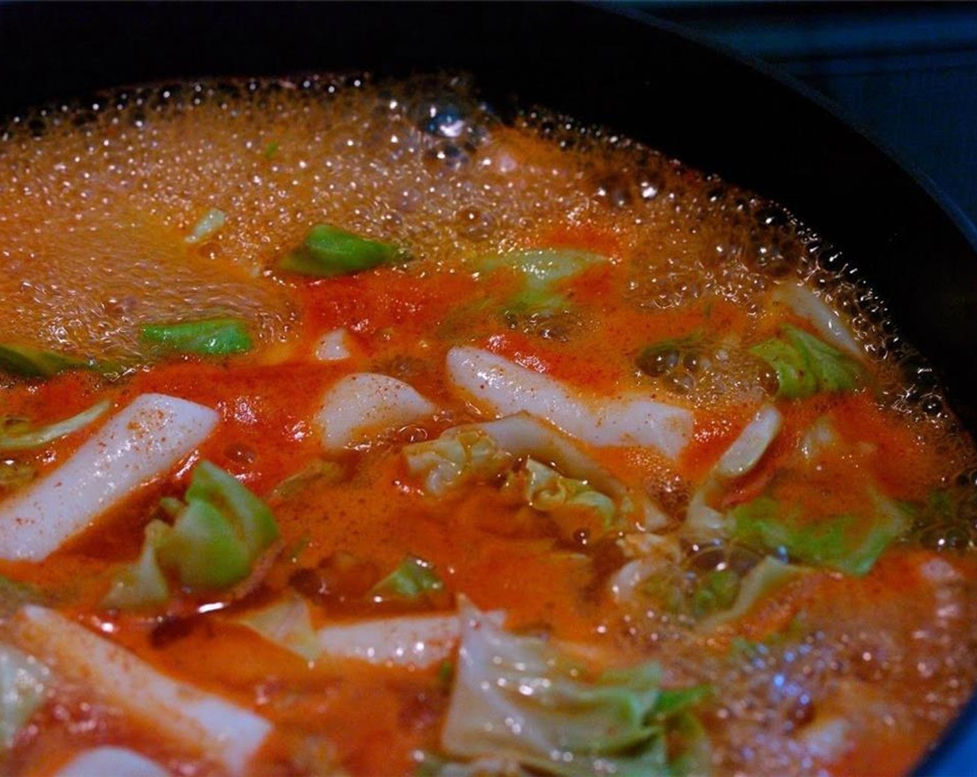 Würzig und göttlich zugleich! Der weiche, aber bissfeste Reiskuchen, wird mit einer würzigen Chili-Gochujang-Sauce einfach traumhaft ... dazu passen wunderbar frittierte Calamari oder Gemüsekrapfen.