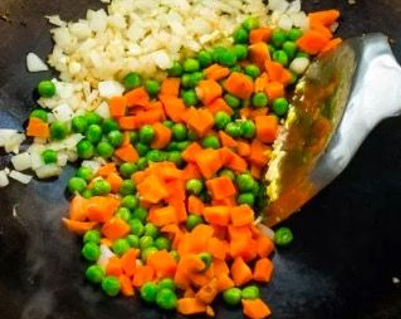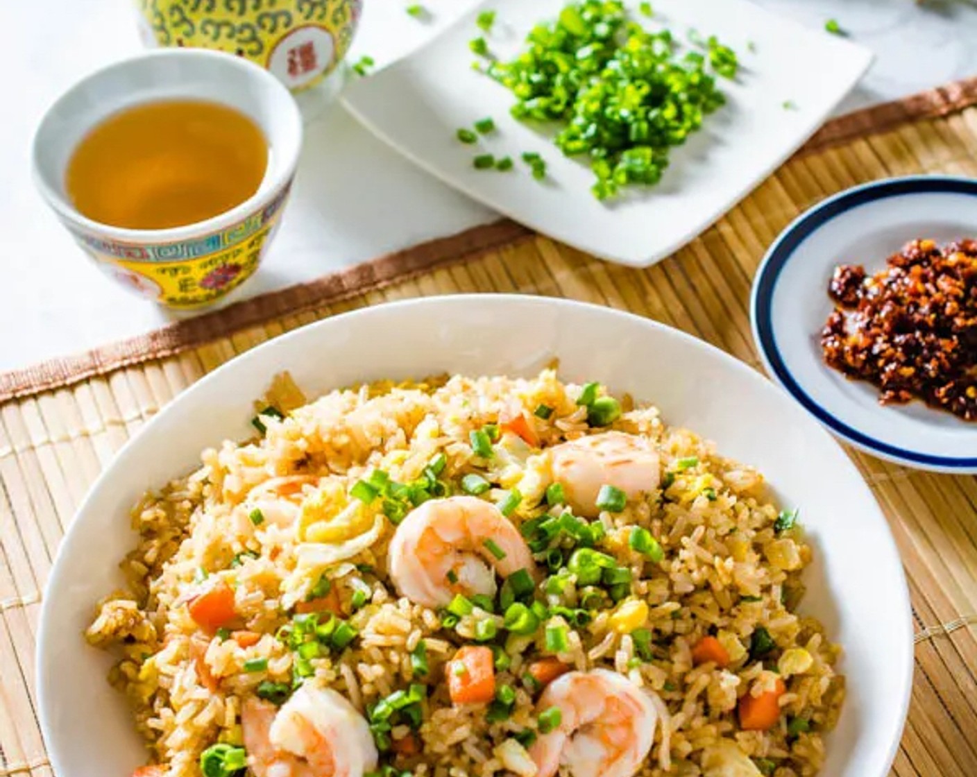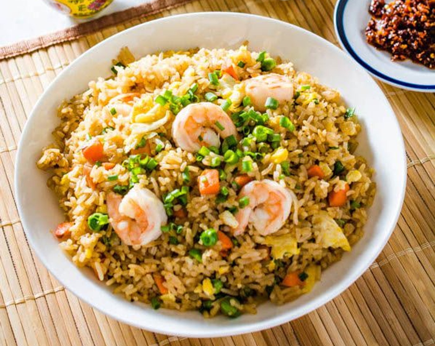 Dieses Rezept ist in kürzester Zeit zubereitet und zum Mitnehmen ideal. Es ist super einfach und schmeckt herrlich! Der Reis enthält frische Garnelen, süsse grüne Erbsen, knackige Karotten, Rührei und viel frische Frühlingszwiebel.