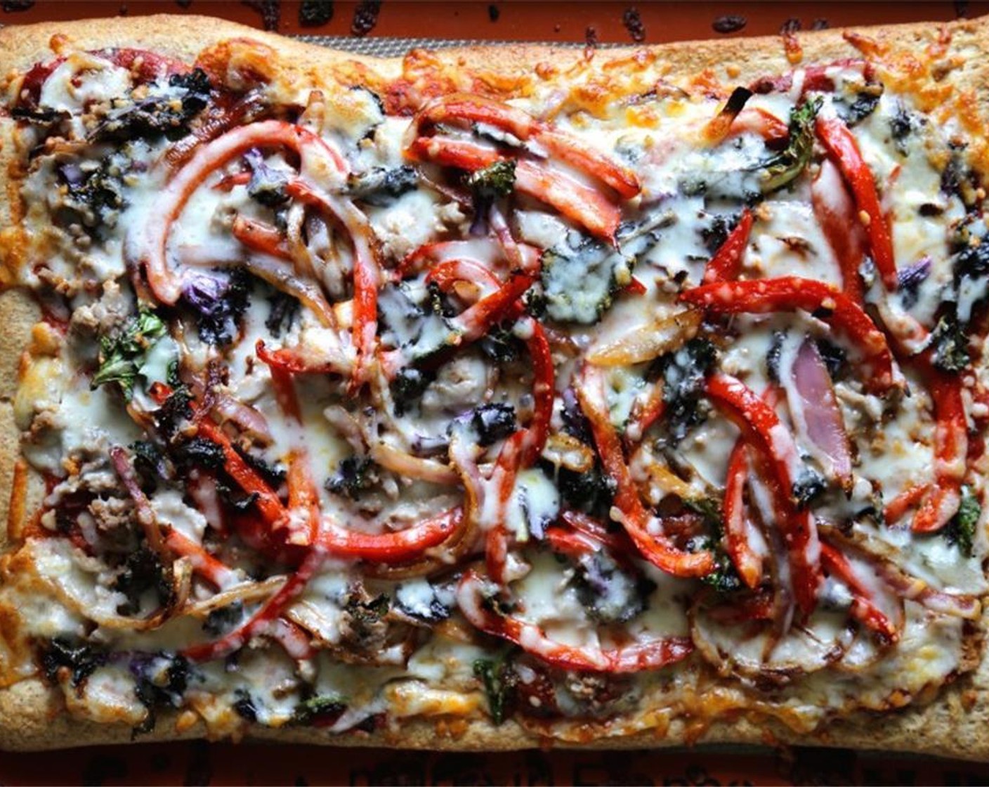 Diese Pastasauce ist ein Volltreffer und passt hervorragend zu den gerösteten Kalette. Alles, was man dazu tun muss, ist, die Pastasauce auf dem Teig verteilen, das Gemüse drauf, backen und voilà - eine köstliche Pizza für zu Hause.