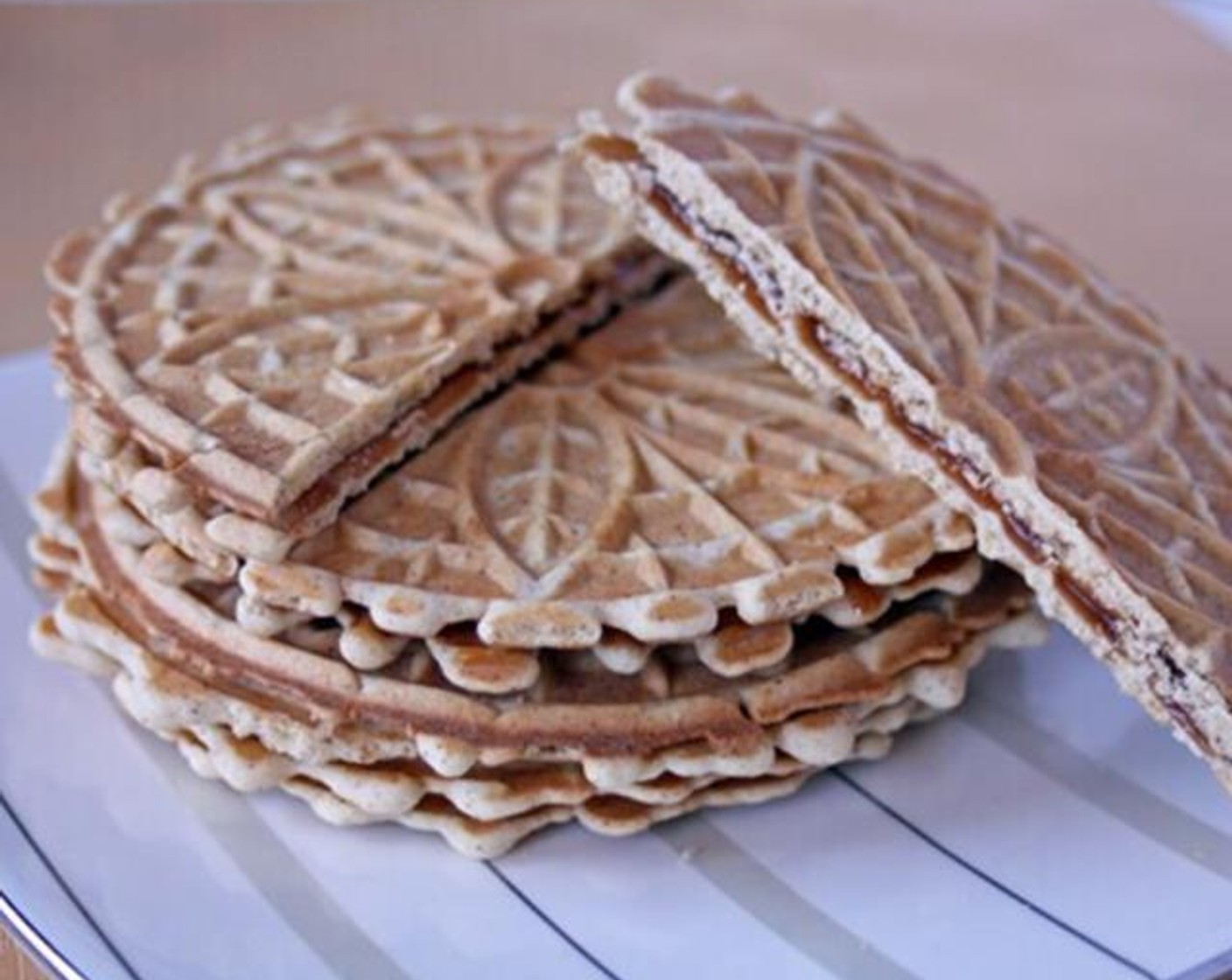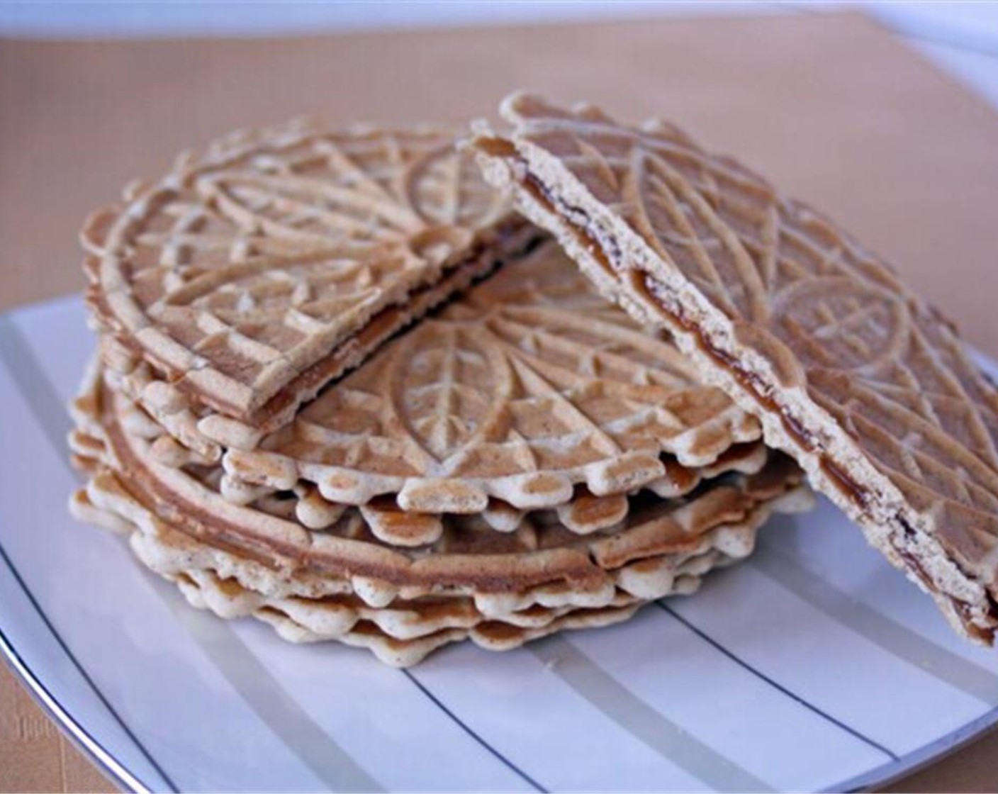 Stroopwaffeln sind wunderbare kleine niederländische Spezialitäten, der ihren Ursprung in der Stadt Gouda haben – die Stadt, aus der der Käse kommt. Sie bestehen aus zwei sehr dünnen waffelartigen Keksen mit einer dünnen Schicht Karamell dazwischen.