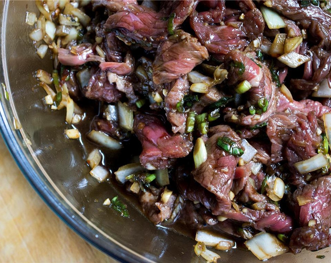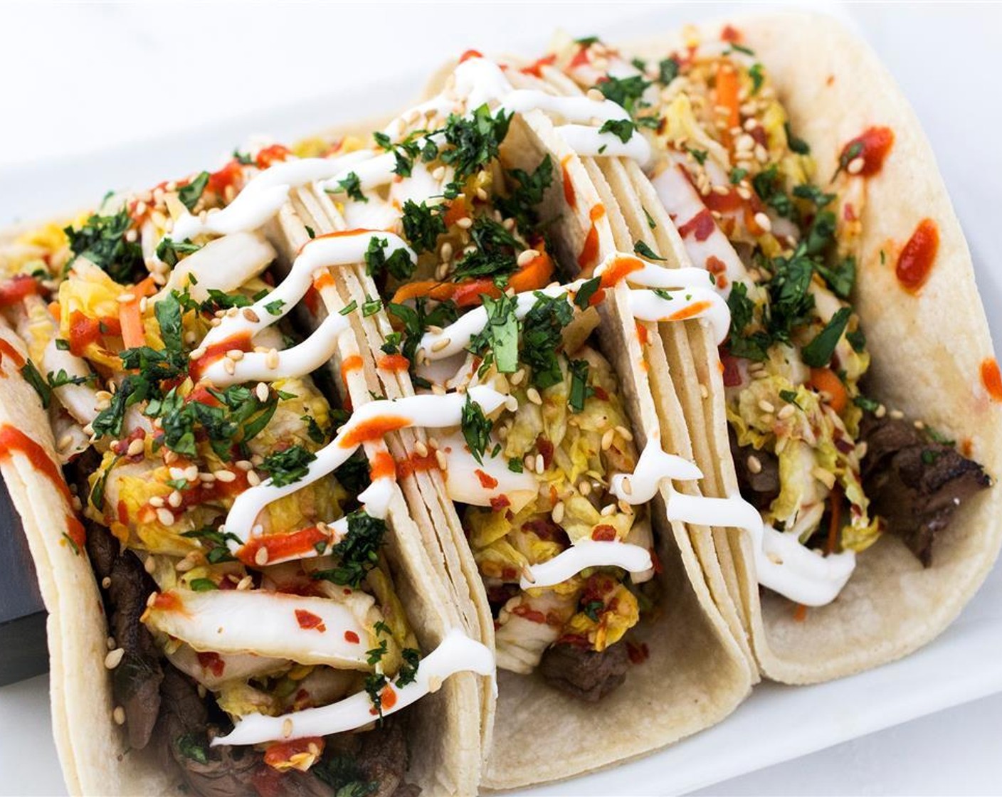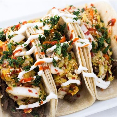 Eine perfekte Fusion von zwei köstlichen Gerichten aus zwei sehr unterschiedlichen Teilen der Welt. Klassischer koreanischer BBQ-Geschmack, aber in einen traditionellen Taco verpackt... Spec-taco-ular! Das zarte, karamellisierte Bulgogi-Rindfleisch ist saftig und voller Geschmack in jedem Bissen dank des zusätzlichen Kicks durch das hausgemachte Kimchi. Fusionsküche vom Feinsten!