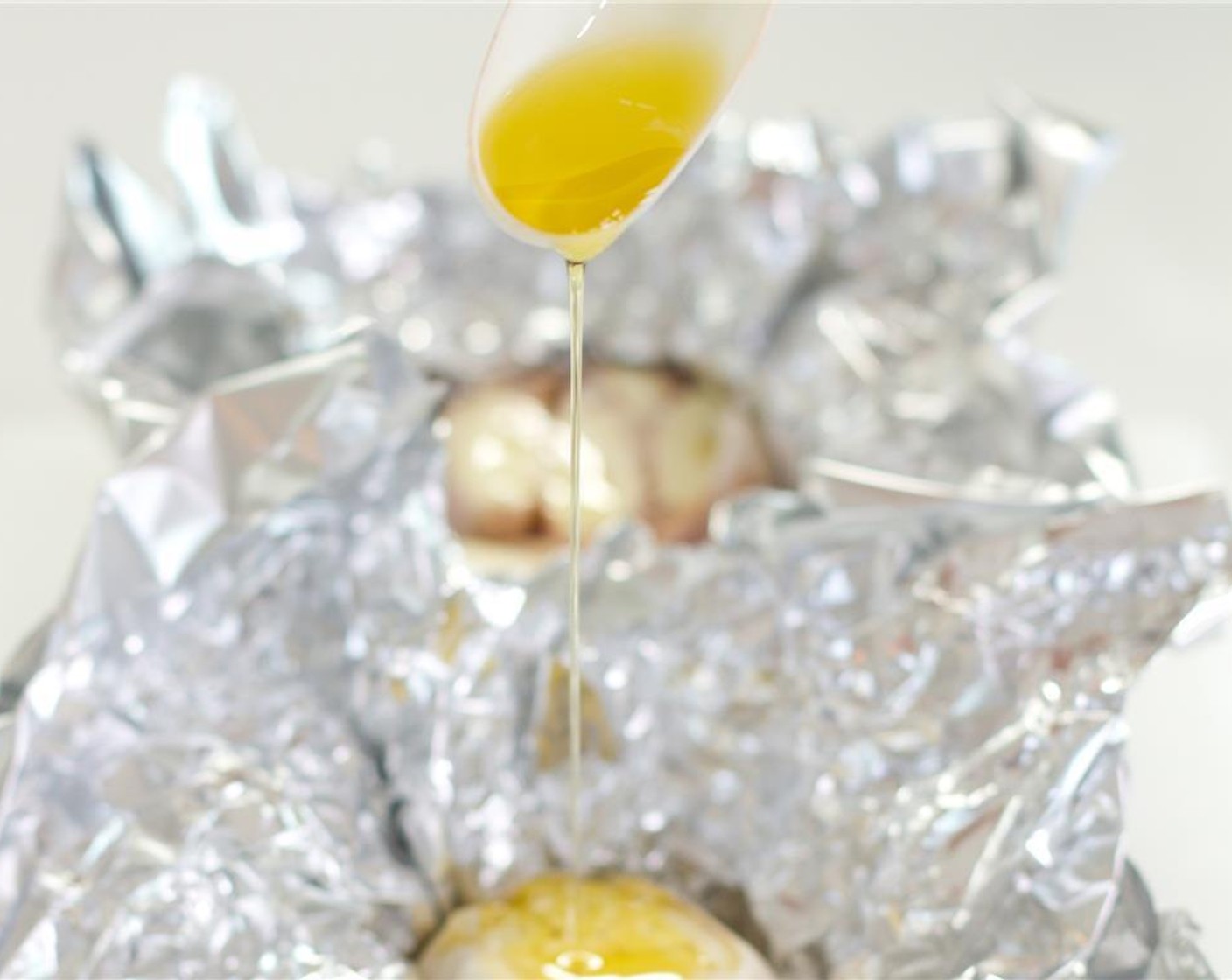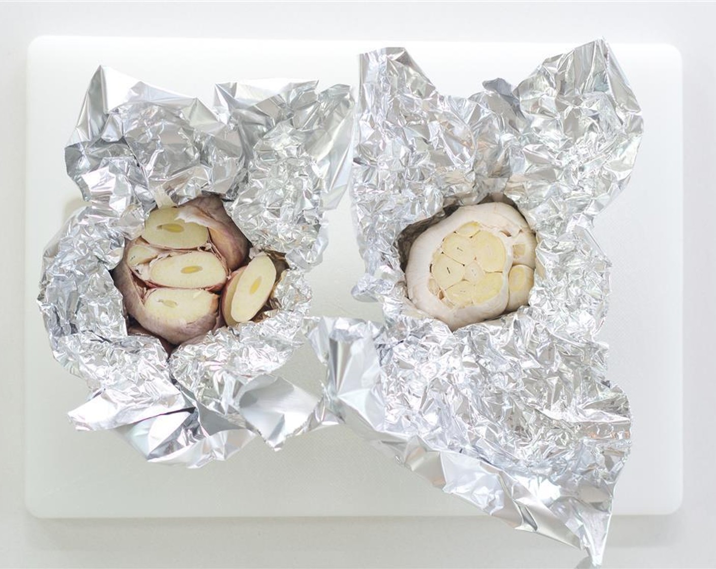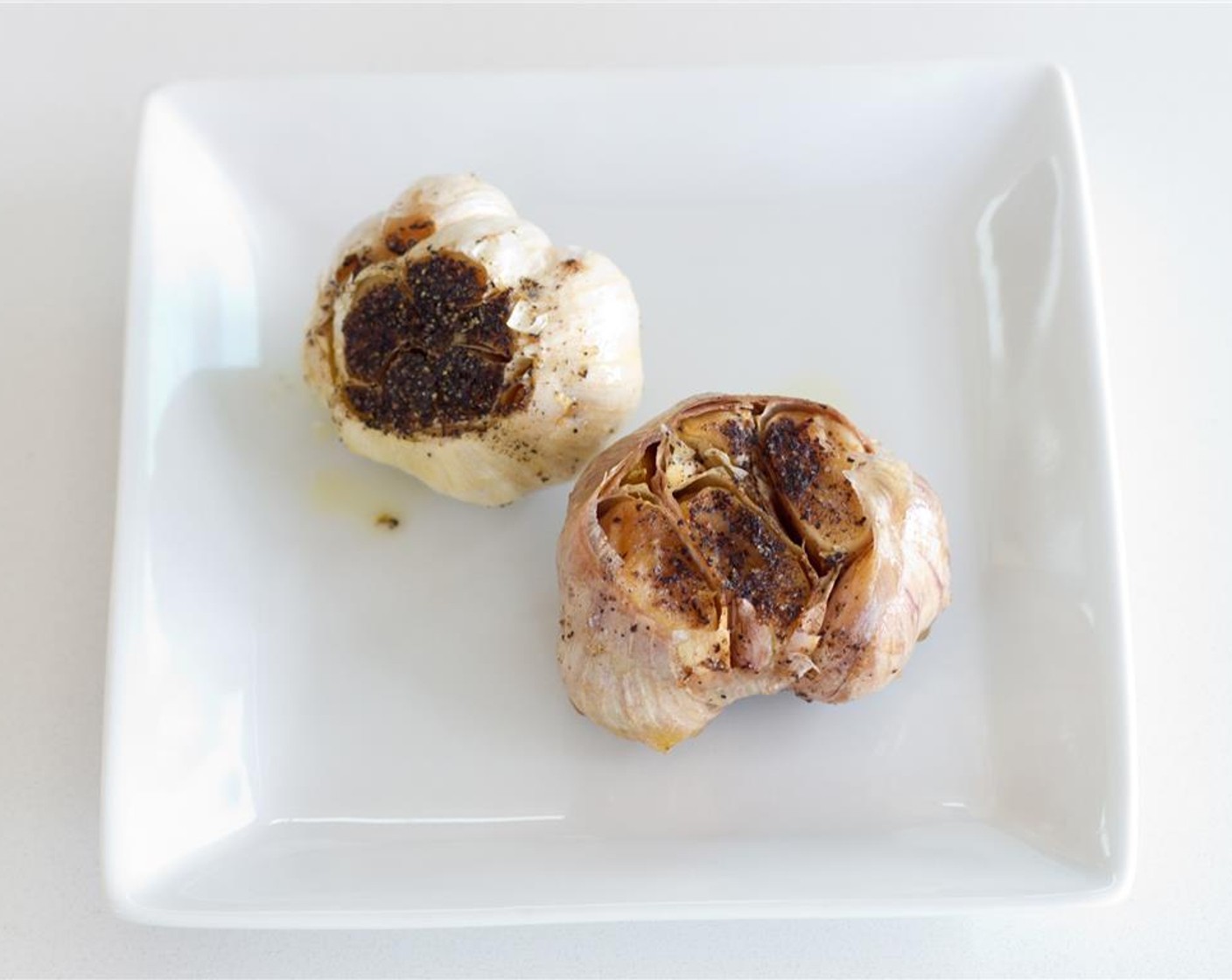 Gerösteten Knoblauch kann man einfach im Voraus zubereiten. Er ist sehr vielseitig und kann als Brotaufstrich als Vorspeise oder püriert in Saucen und Dressings verwendet werden.