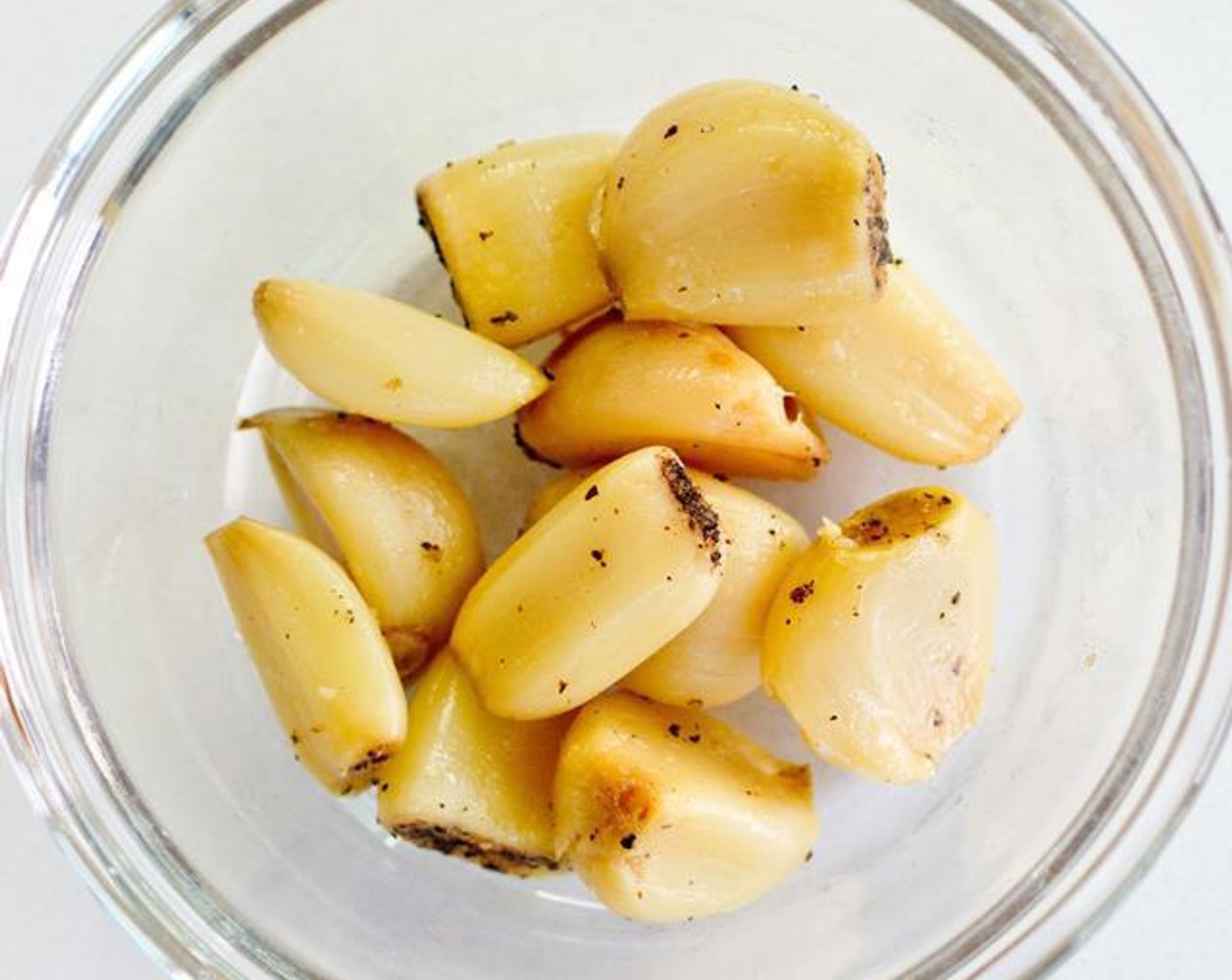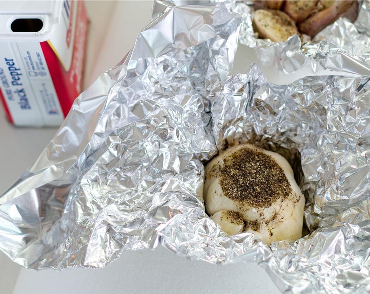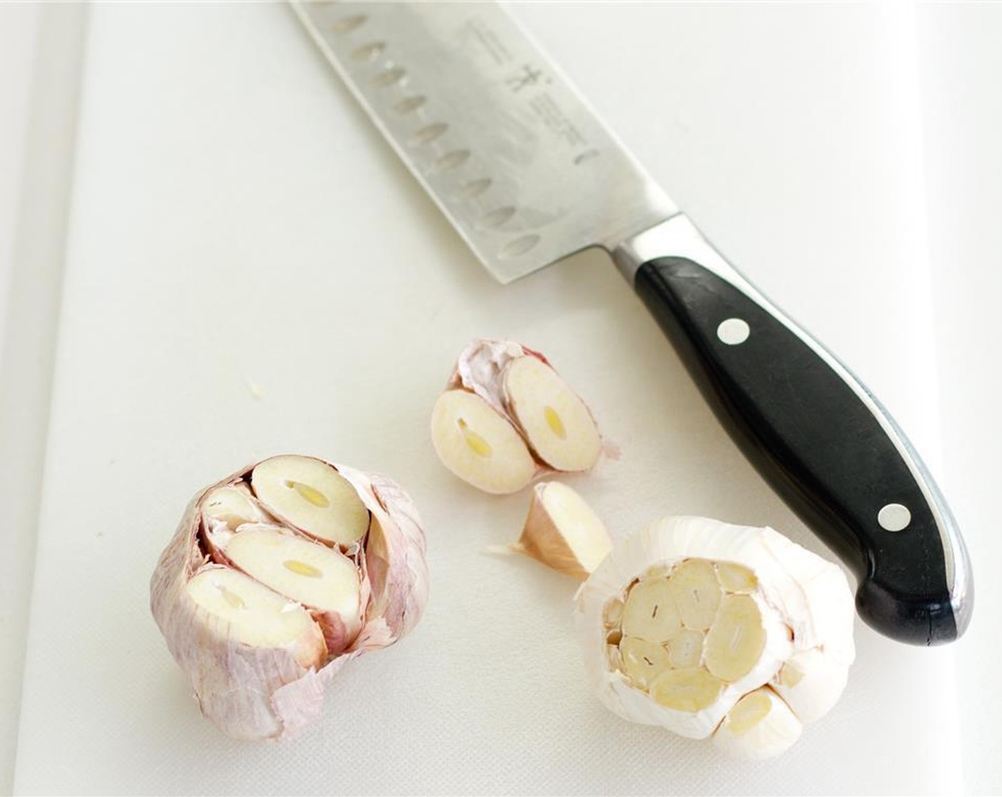 Gerösteten Knoblauch kann man einfach im Voraus zubereiten. Er ist sehr vielseitig und kann als Brotaufstrich als Vorspeise oder püriert in Saucen und Dressings verwendet werden.