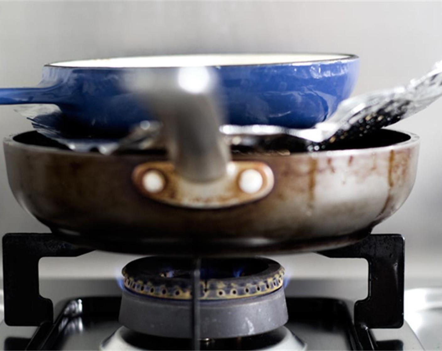 Mit einem Stück Folie abdecken, das gerade so gross ist, dass an den Rändern Dampflöcher bleiben (dies verhindert Spritzer und wärmt den Bauch beim Garen). Sobald man Brutzelgeräusche hört, die Hitze auf NIEDRIG herunter schalten.