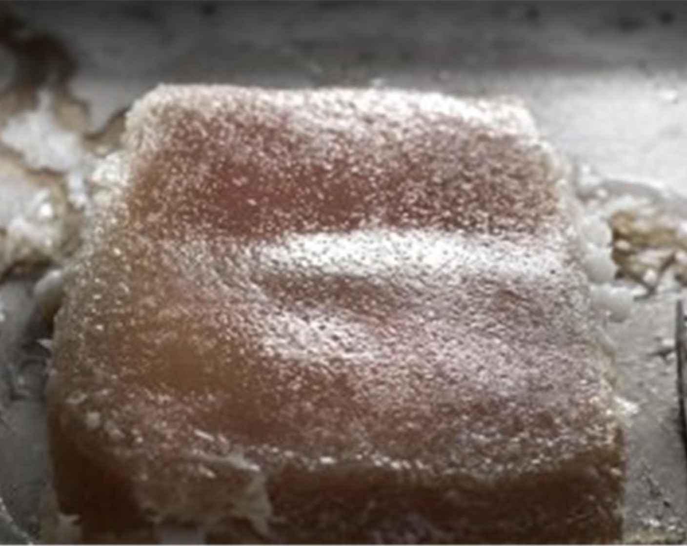 Das Blech aus dem Ofen nehmen und 30 Minuten abkühlen lassen, dann 1 Stunde lang im Kühlschrank abkühlen lassen (mit der Hautseite nach unten).